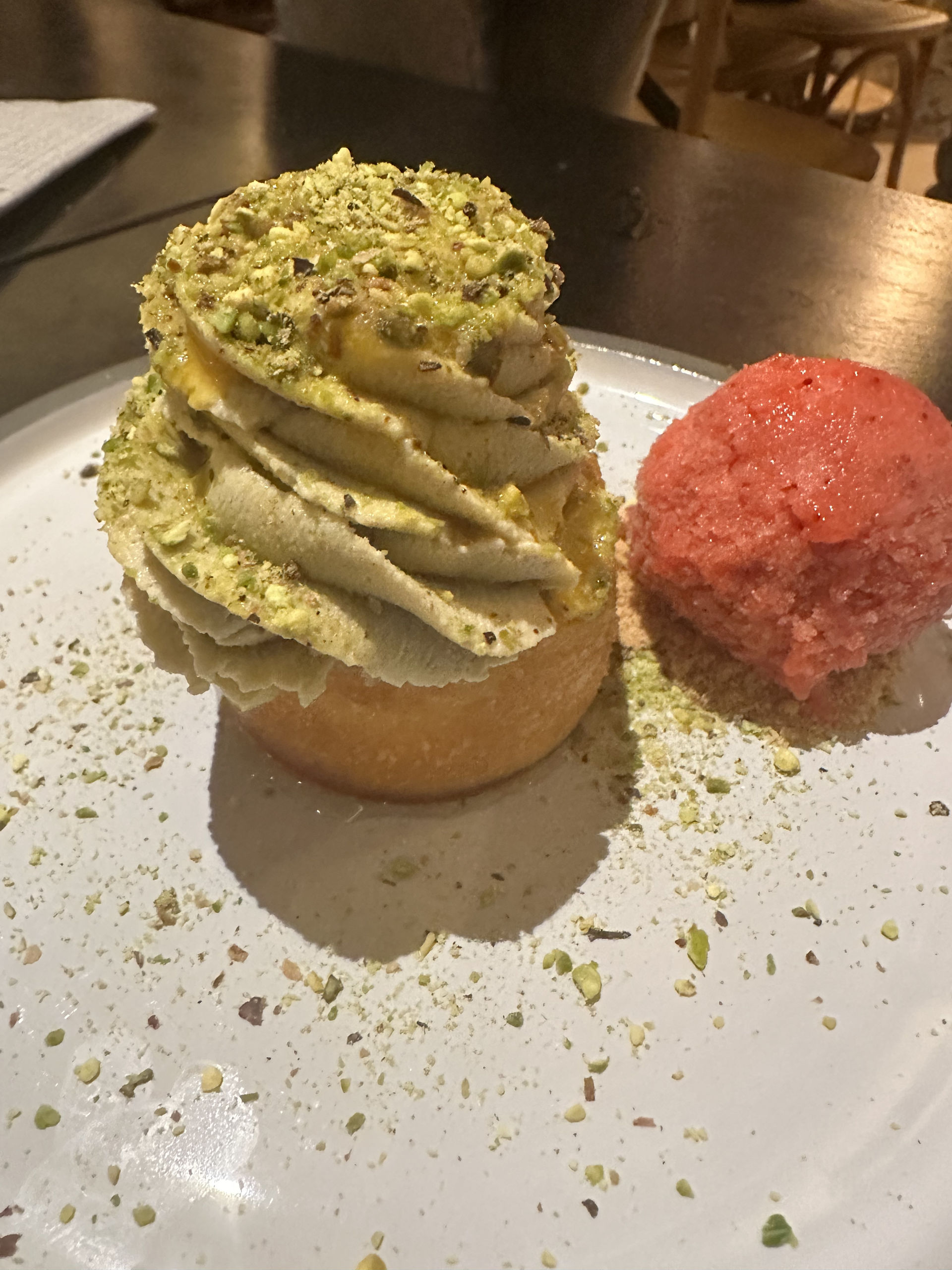 Buen postre: baba al limonchelo relleno de crema de maracuyá.