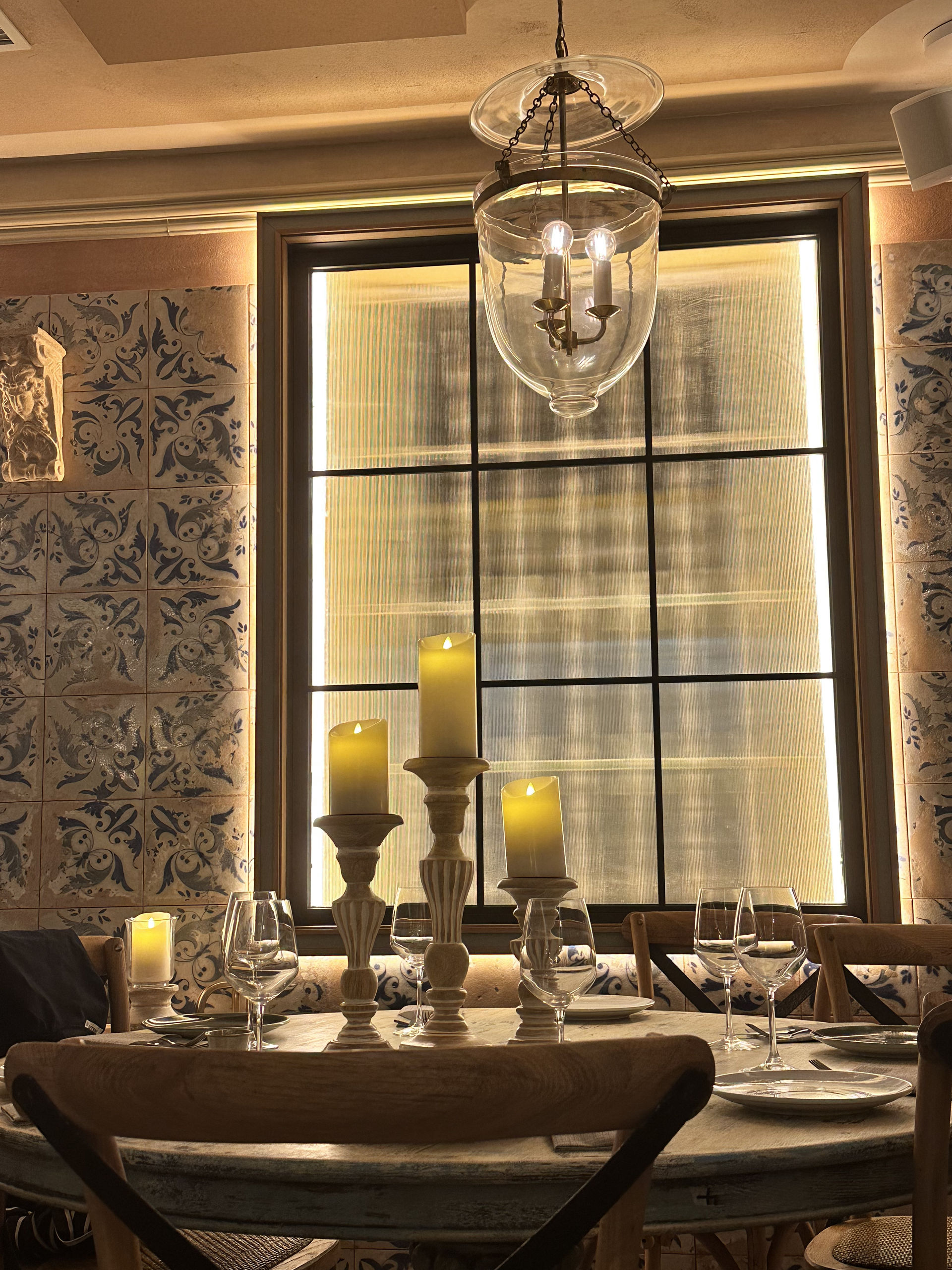 La decoración de Ostinato te lleva a otra época, esa en la que te encuentras en un palazzo italiano pero en el que se aprecia el paso del tiempo pero en el que permanece un lujo que queda reflejado en sus lámparas.