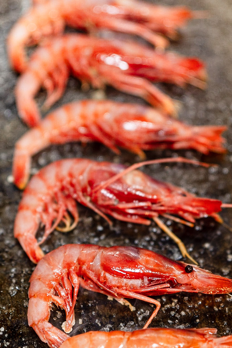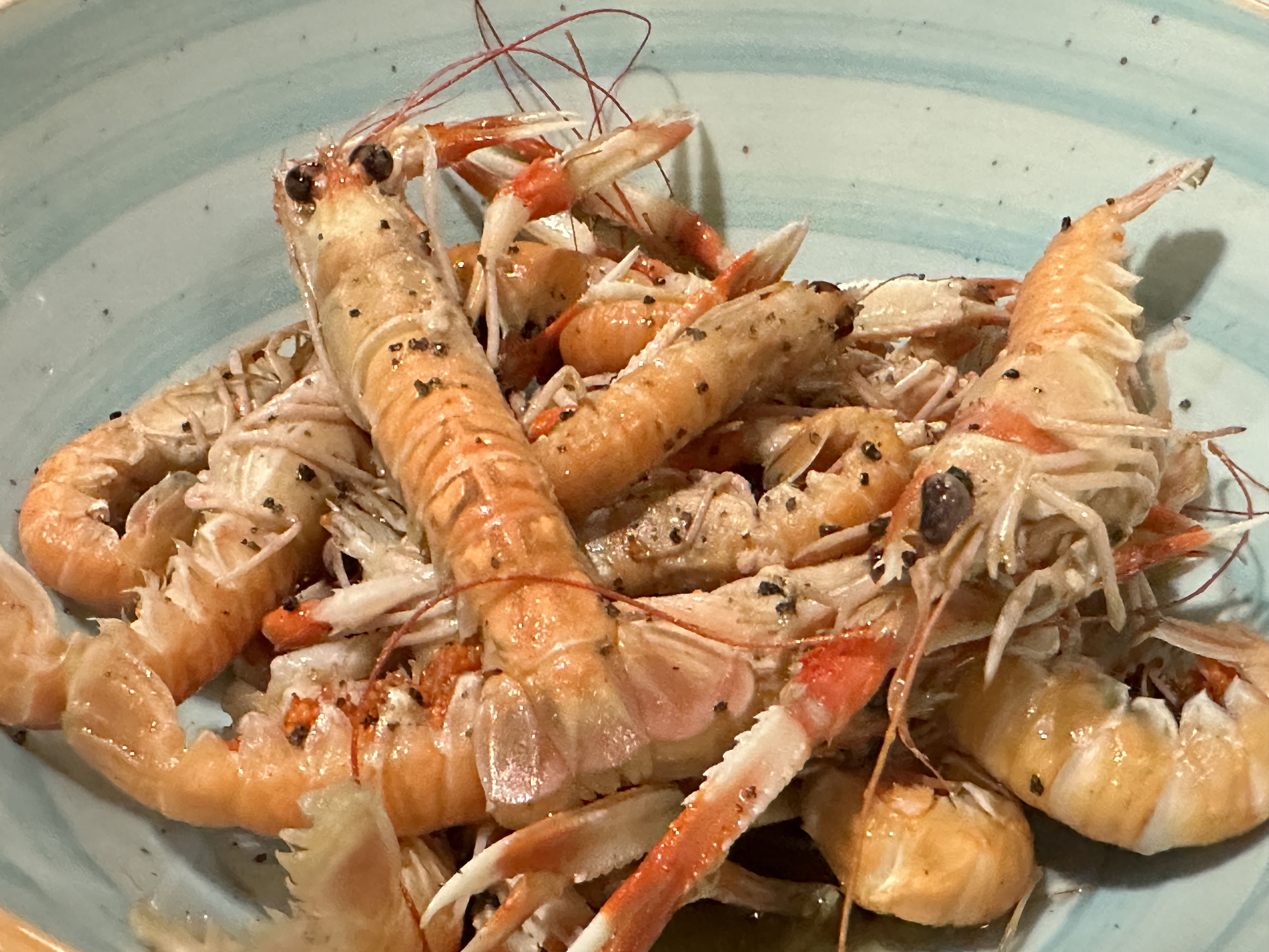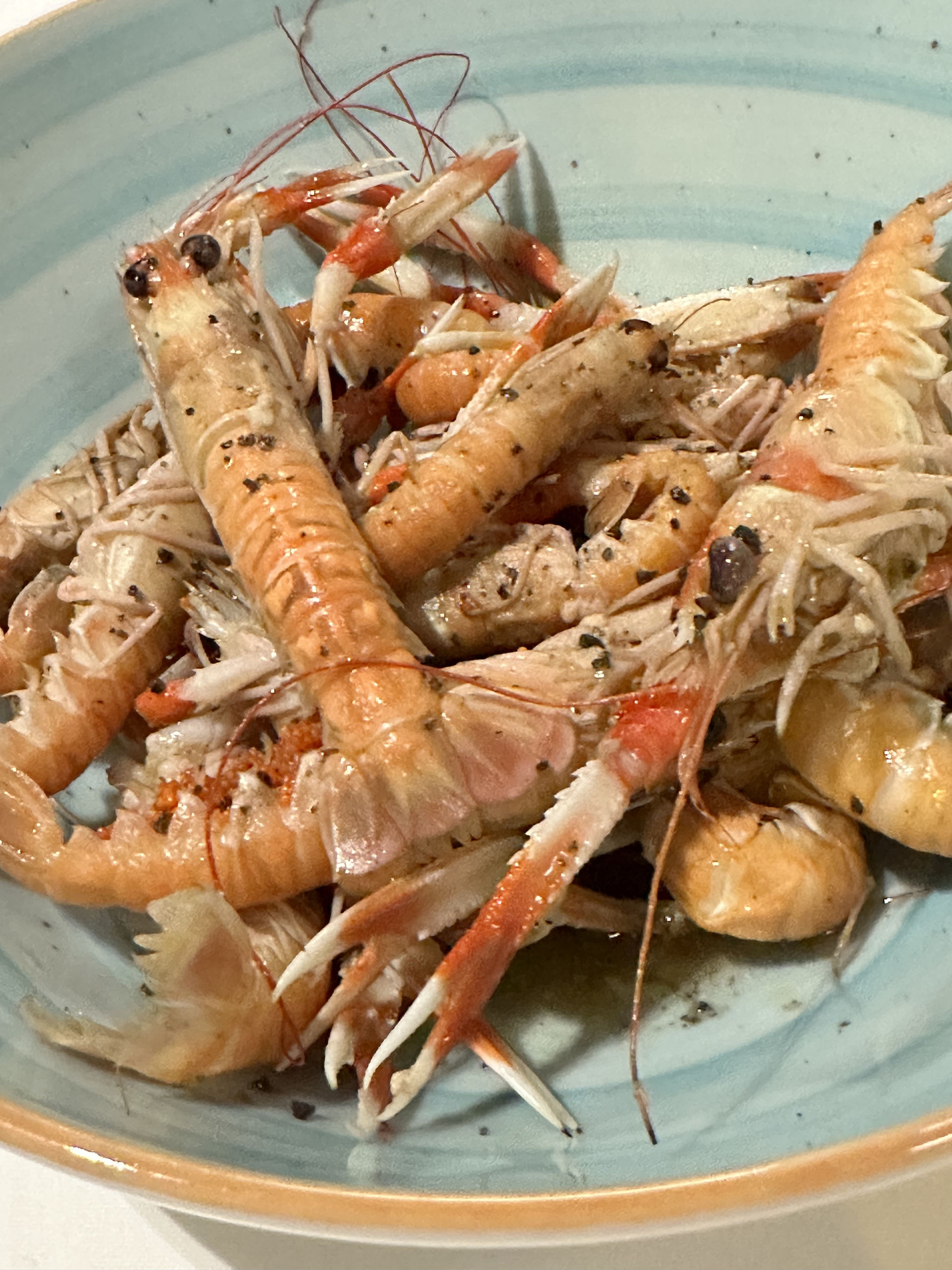 Cigalas baby, simplemente deliciosas y pasadas por las brasas en su perfecto punto para dejarlas más cruditas que pasadas, un acierto.