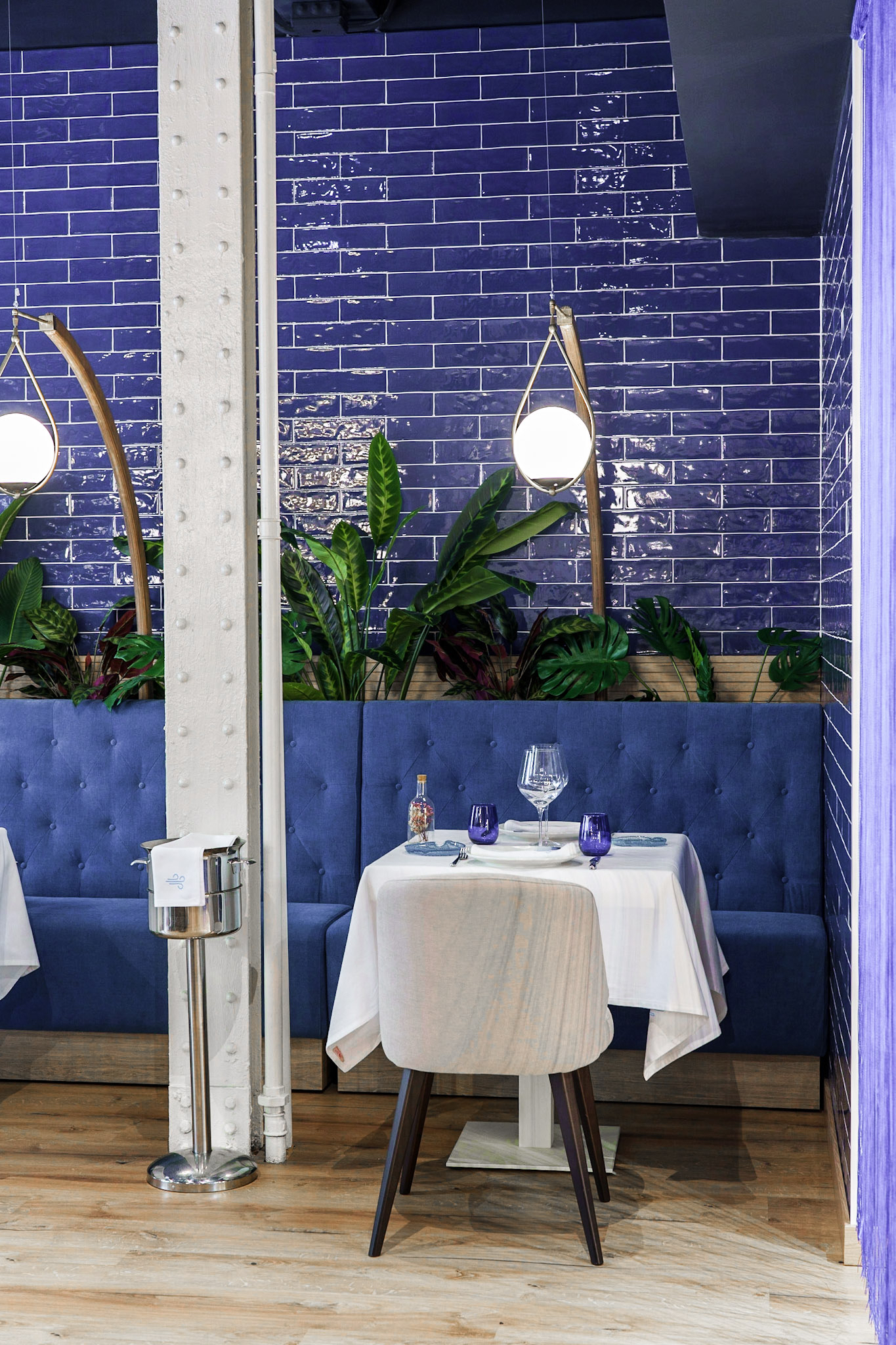 La decoración de Sa Marinada destaca por los tonos fríos tan marineros como el blanco y azul.
