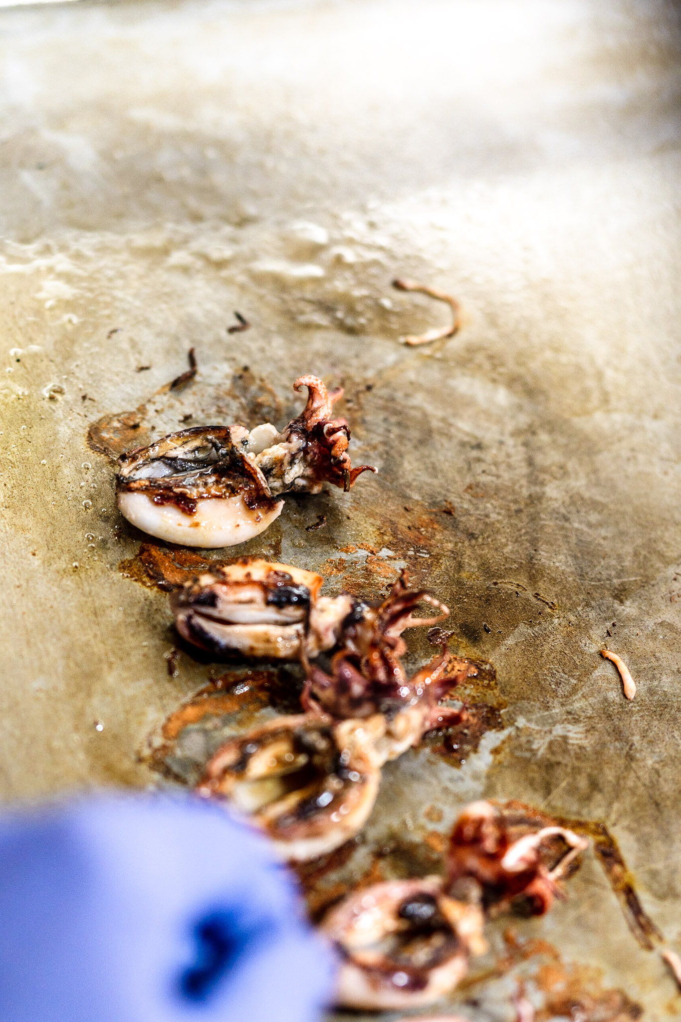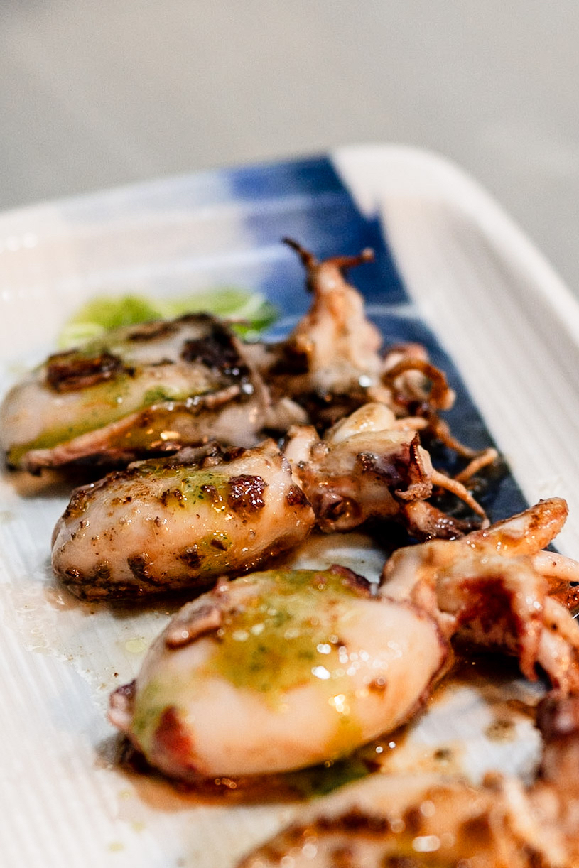 Los mini sepionetas de costa a la plancha ya emplatados y listos para degustar.