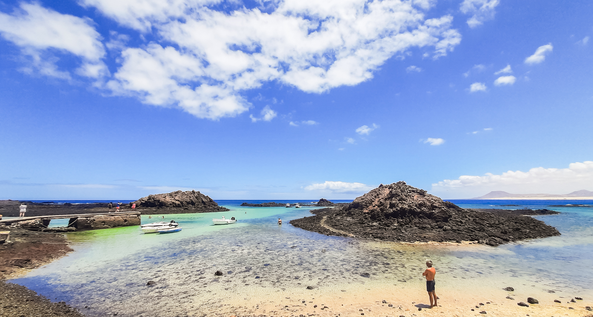 En cuanto al transporte, lo más recomendable para llegar es el ferry desde Corralejo o en lancha neumática, pero esta segunda opción con niños pequeños hay que tomarla con cautela debido a ser un medio de trasporte menos estable y desprotegido.