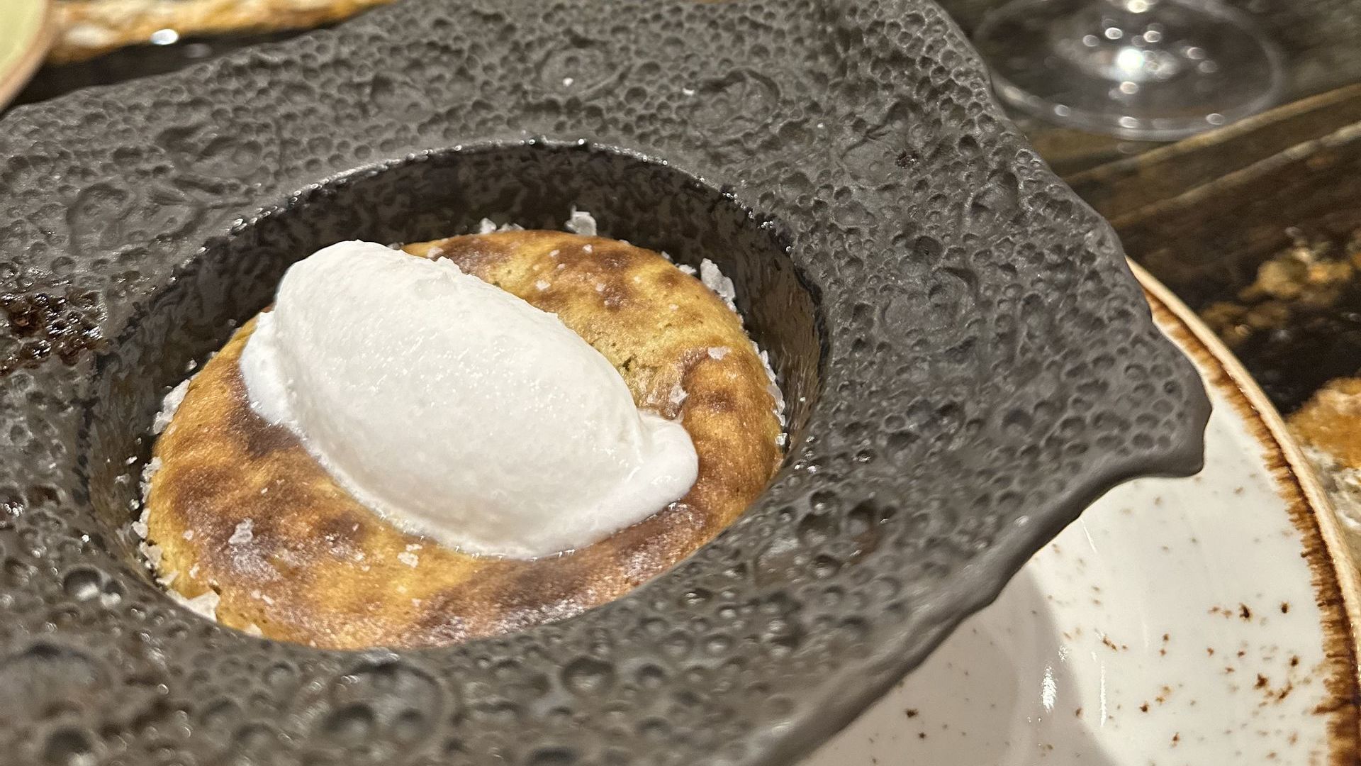 Y por si te parece poco lo que ofrece esté suculento menú, llegan los postres con un sublime, cremoso y líquido matcha volcano, de fino bizcocho con explosión liquida de té matcha y chocolate blanco acompañado de helado de coco. El yuzu & yuzu pie es una refrescante crema y sorbete de yuzu sobre bizcocho, crocante de pistacho y merengues secos.
