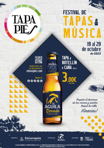 Toda la información sobre Tapapiés está disponible en la web, donde el público también puede votar sus tapas favoritas (la votación se cierra a las 14:00h del domingo 29). Tapapiés obsequiará con premios en metálico a los establecimientos ganadores: 500€ (tapa mejor valorada por el público), 300€ (segunda tapa mejor valorada) y 200€ (mejor tapa elaborada con cerveza El Águila Dorada), que se canjearán por compras en comercios asociados del barrio.
