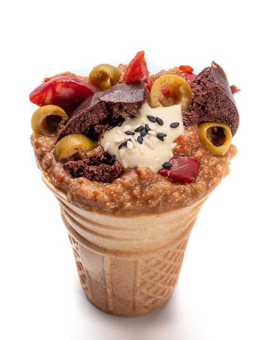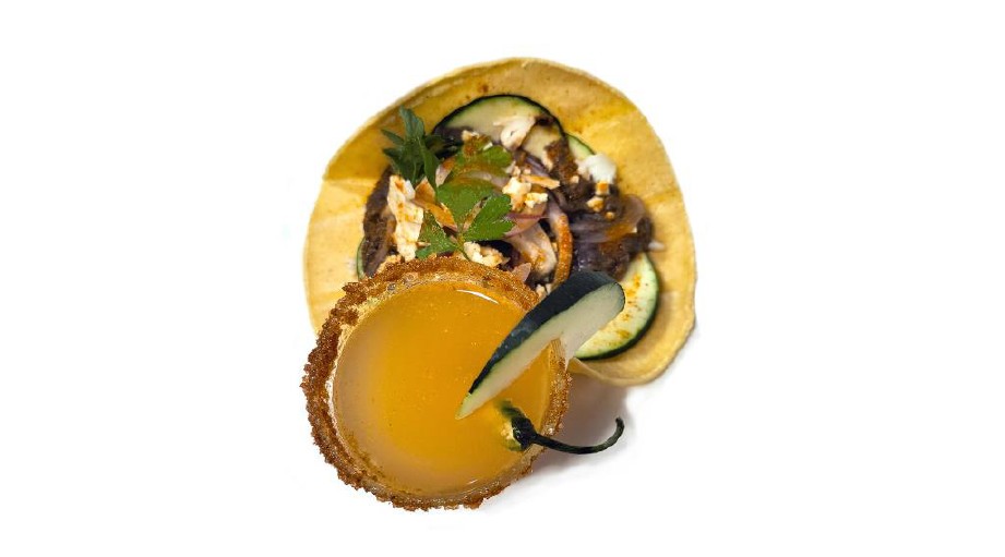 Aunque para riqueza oriental, la fitira egipcia de Darbuka (Buenavista, 46). Su masa de sémola, harina de trigo y aceite de oliva se rellena con baba ganoush, tahini, comino, ajo, cebolla roja, tomate, perejil, limón, sésamo y za’atar. Um tinquim do cantim de El Quijote (Ave María, 52) viaja de Oriente Próximo a Brasil al mezclar carne bovina con especias y mermelada de hierbabuena.