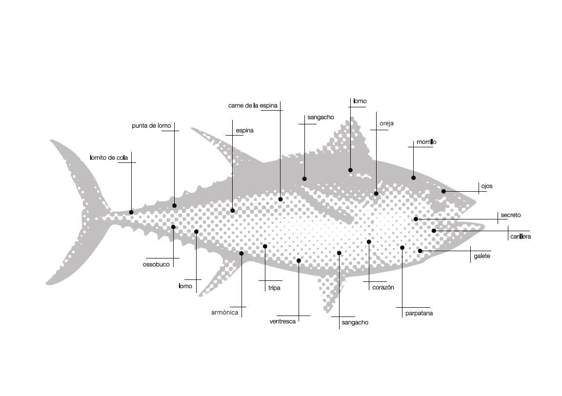 Todas las partes del atún que se aprovechan gastronómicamente.