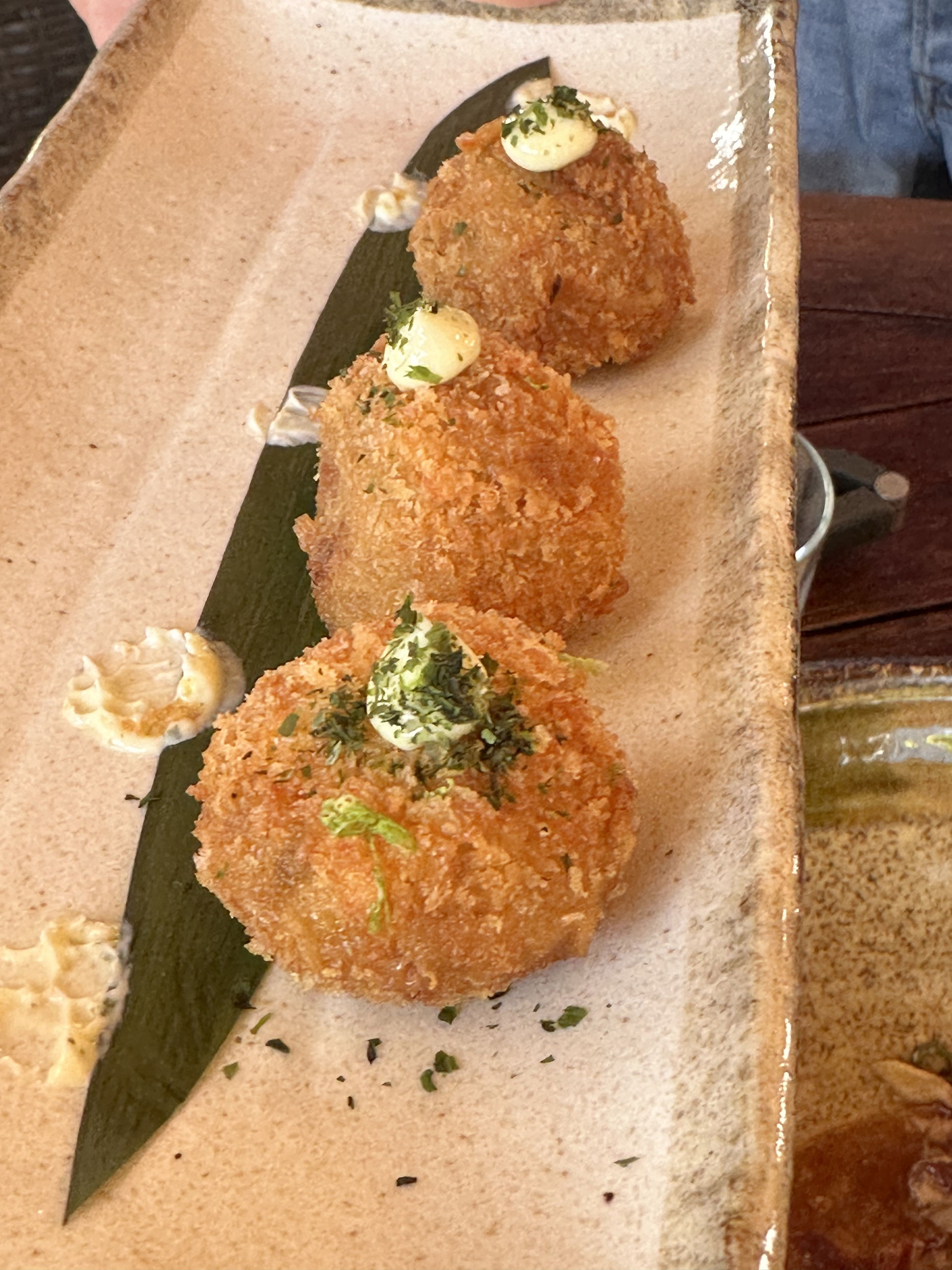 El único pase que no tenía nada de atún fue el de la croqueta de bacalao, pero es una especialidad de la casa que merece mucho la pena.