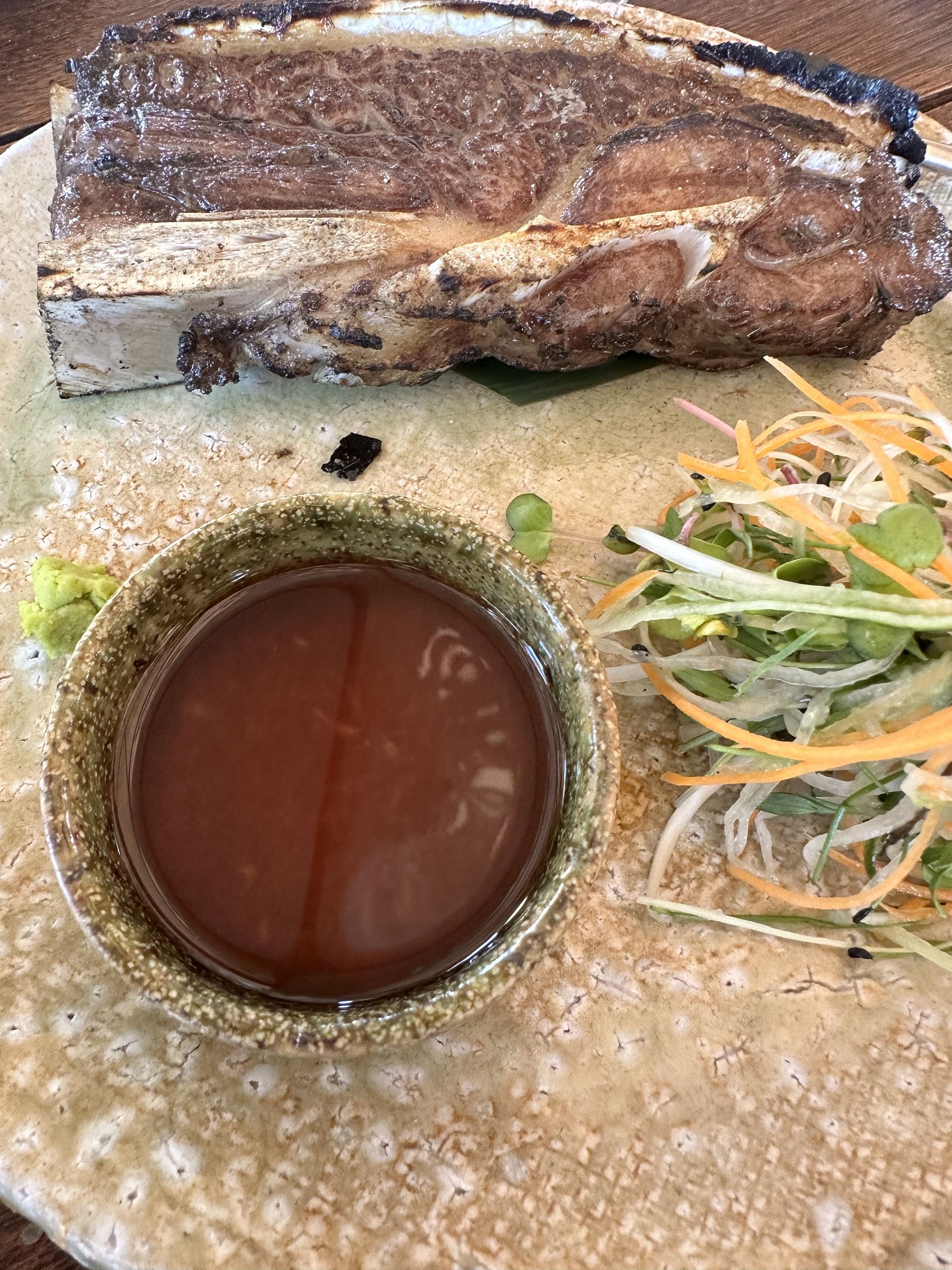 Un plato típico de Japón se hace sacando la carne que se ha quedado pegada a la espina tras separar los lomos y la ventresca. Como nos cuenta el chef, "como en cualquier animal, la carne que está pegada al hueso es la más sabrosa. Así que lo que hacemos es rascar la carne de la espina".