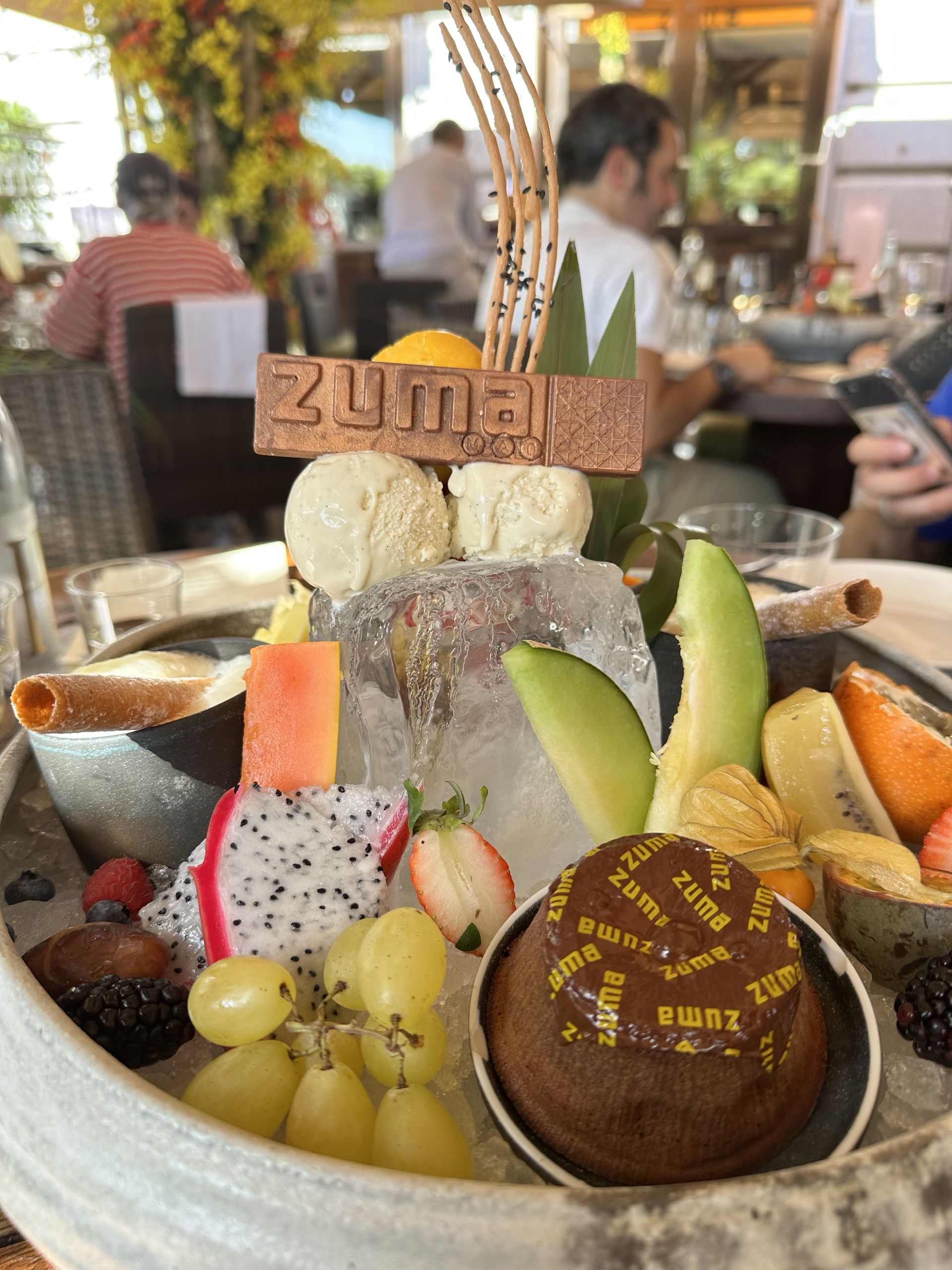 El postre de Zuma es el fin de fiesta tradicional para suavizar la cantidad de atún del menú con helados, frutas y su clásico coulant de chocolate.