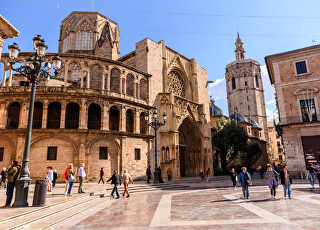 Su impresionante Catedral de Valencia, a pocos minutos de la Plaza de la Reina es el principal punto de encuentro de los valencianos y los viajeros que visitan la ciudad, con un crisol de estilos en su planta desde el gótico, hasta con elementos del románico, del gótico francés, del renacimiento, del barroco o del neoclásico.