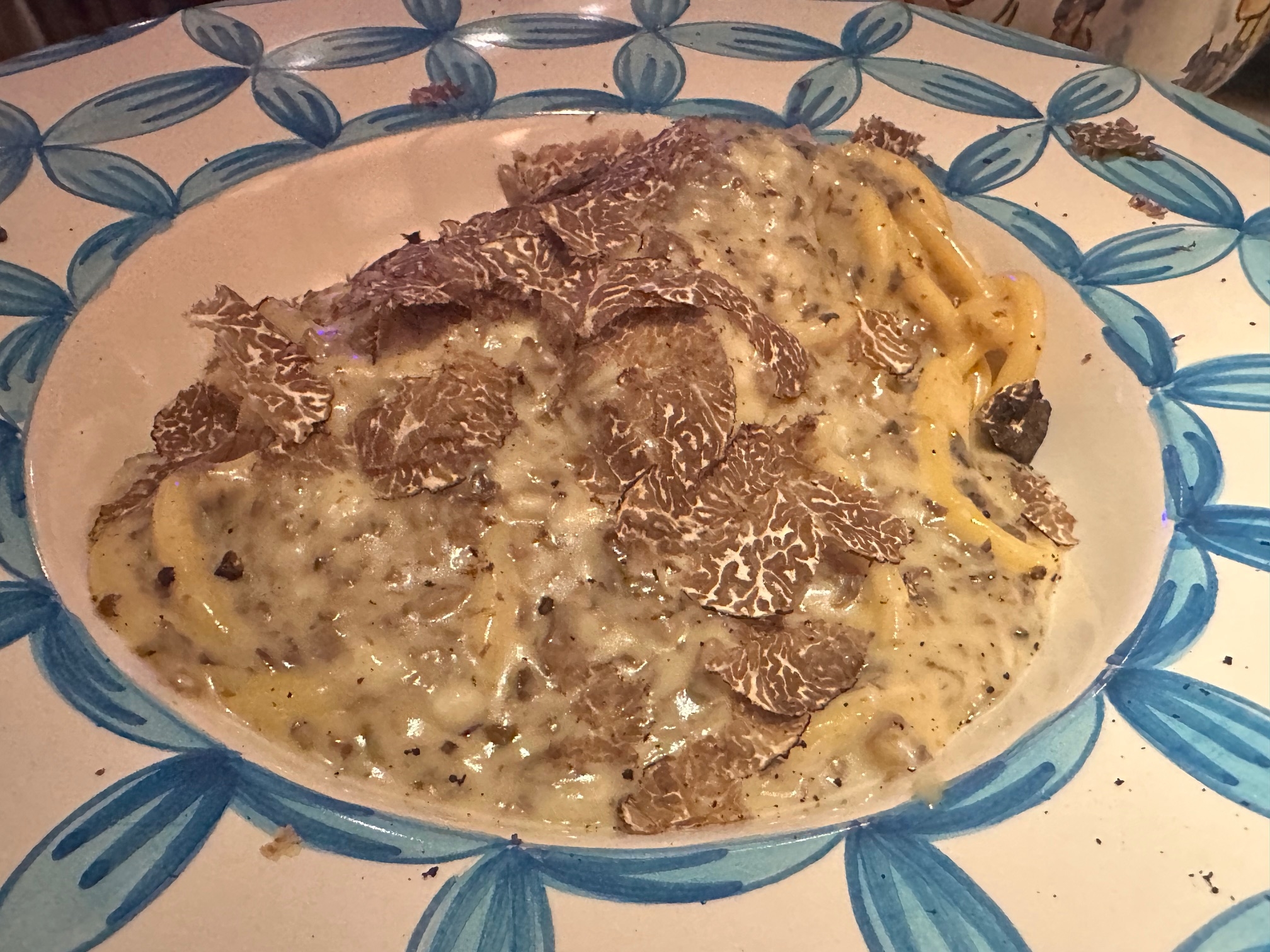 Los buenísimos tornarello cacio & tartufo con trufa de los Abruzzos, espuma de parmigiano y una exquisita salsa de trufa.