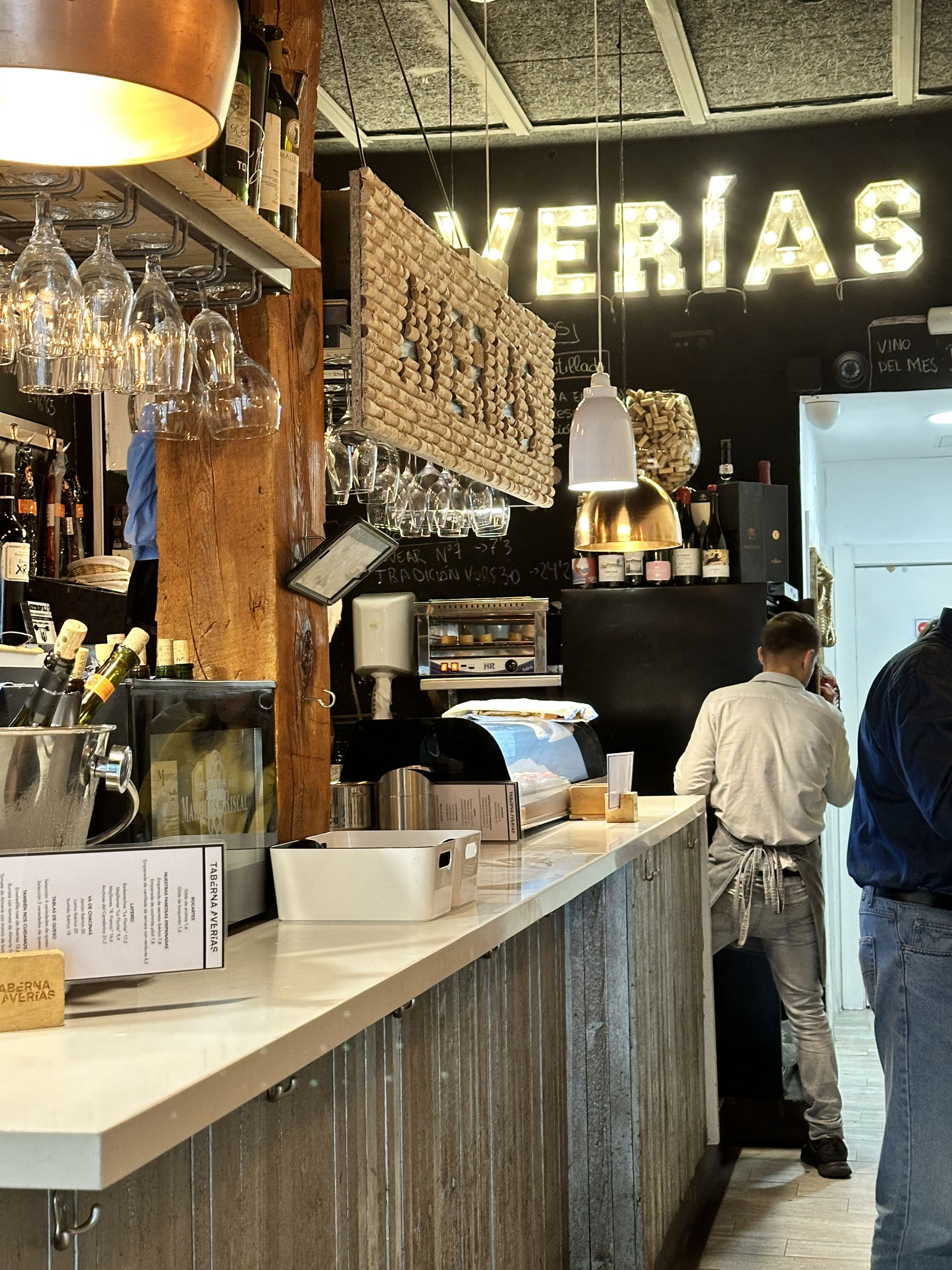 La barra de Taberna Averías, perfecta para tomarte un vino y picar lo que se te antoje de su apetecible carta.