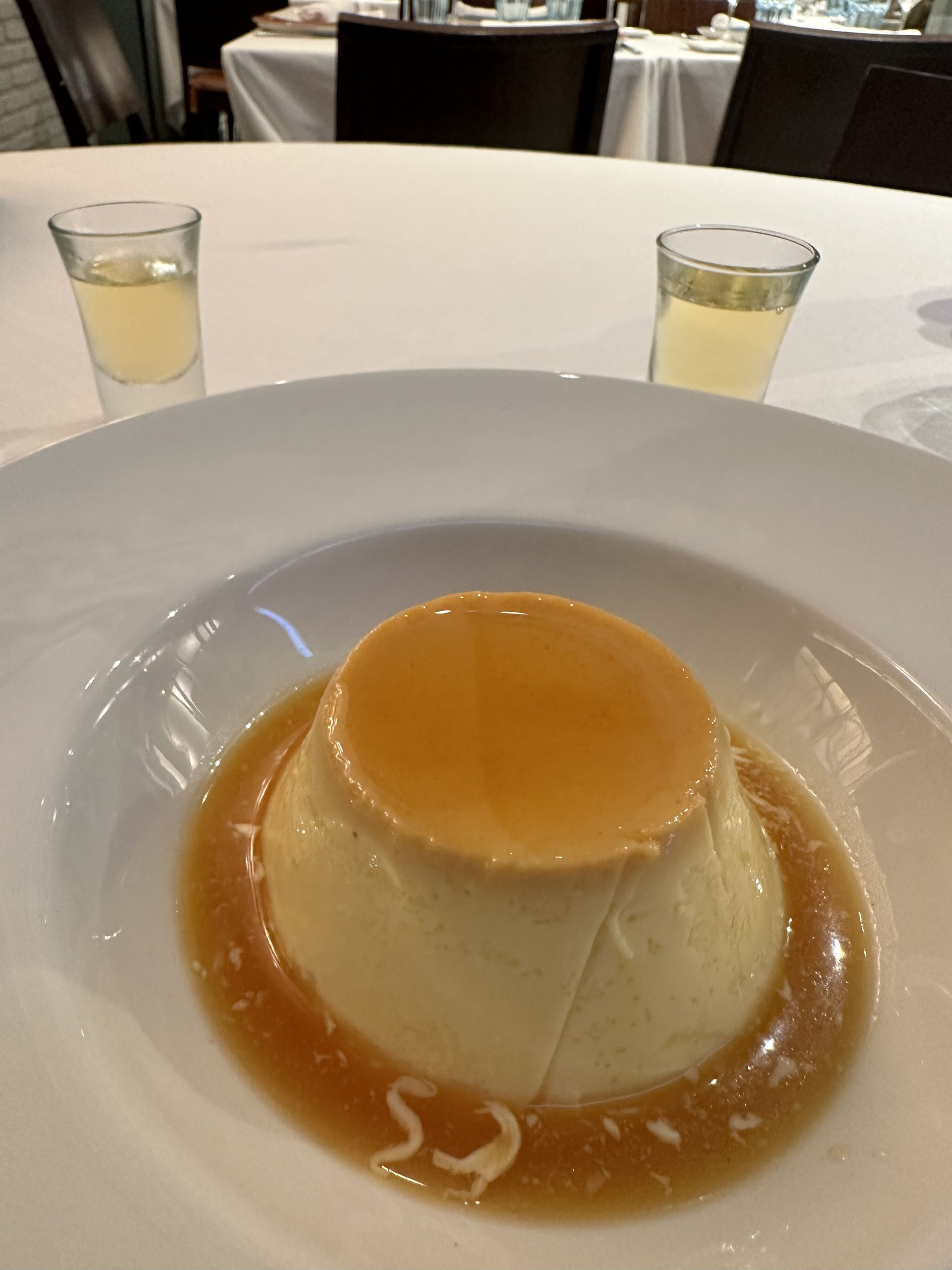 Terminamos la experiencia con una tembladera de huevo casera, un fantástico flan con una textura magnífica y lo maridamos de una forma sorprendente con un whisky single japonés The Chita, para darle un sorbo entre bocado y bocado ya que el dulce del flan hará que se rebaje el sabor alcohólico del whisky.