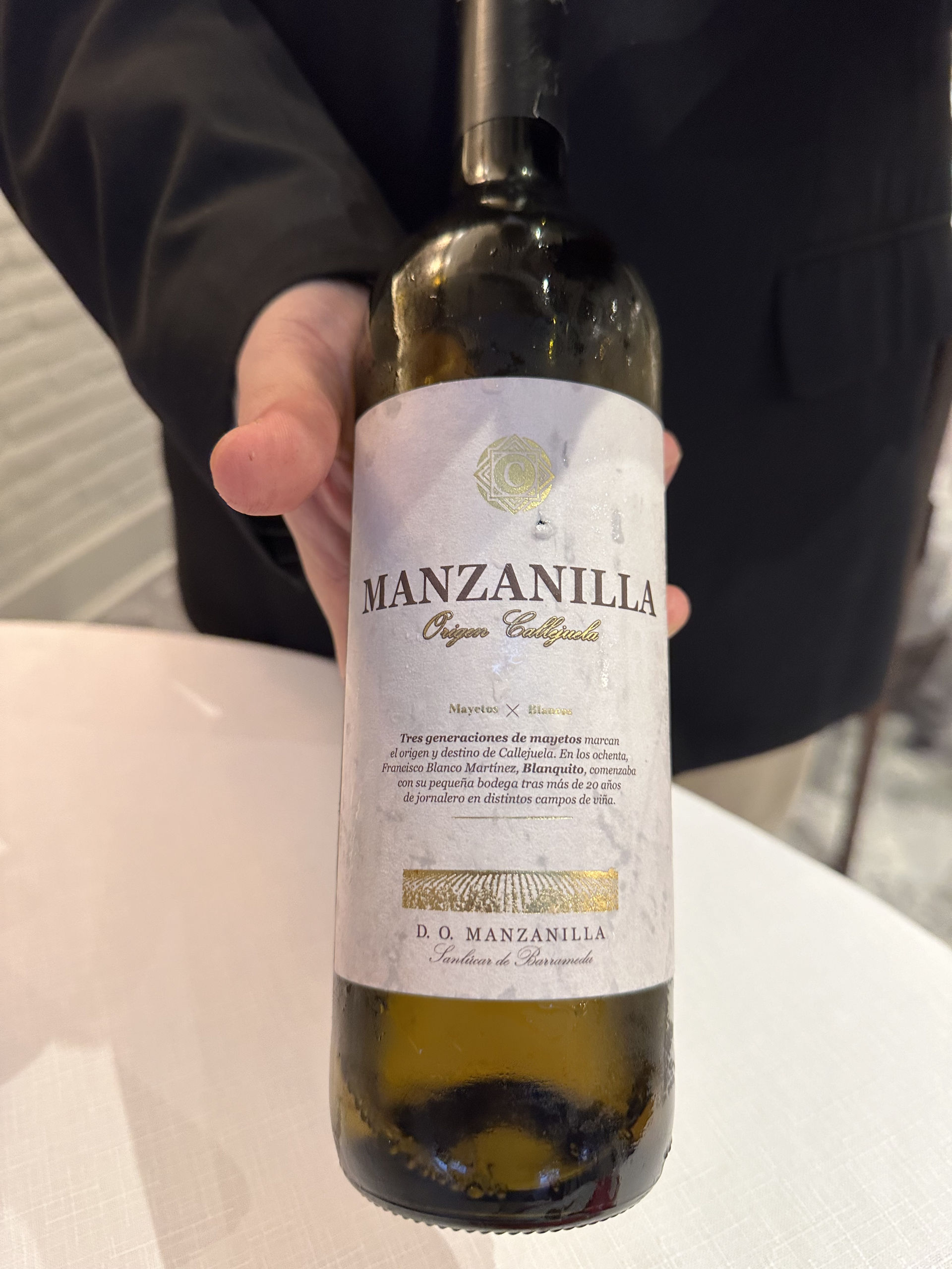Vino Manzanilla Origen Callejuela, DO Manzanilla, elaborado por la Bodega Callejuela con uva Palomino fino de Sanlúcar de Barrameda, con un toque salino.