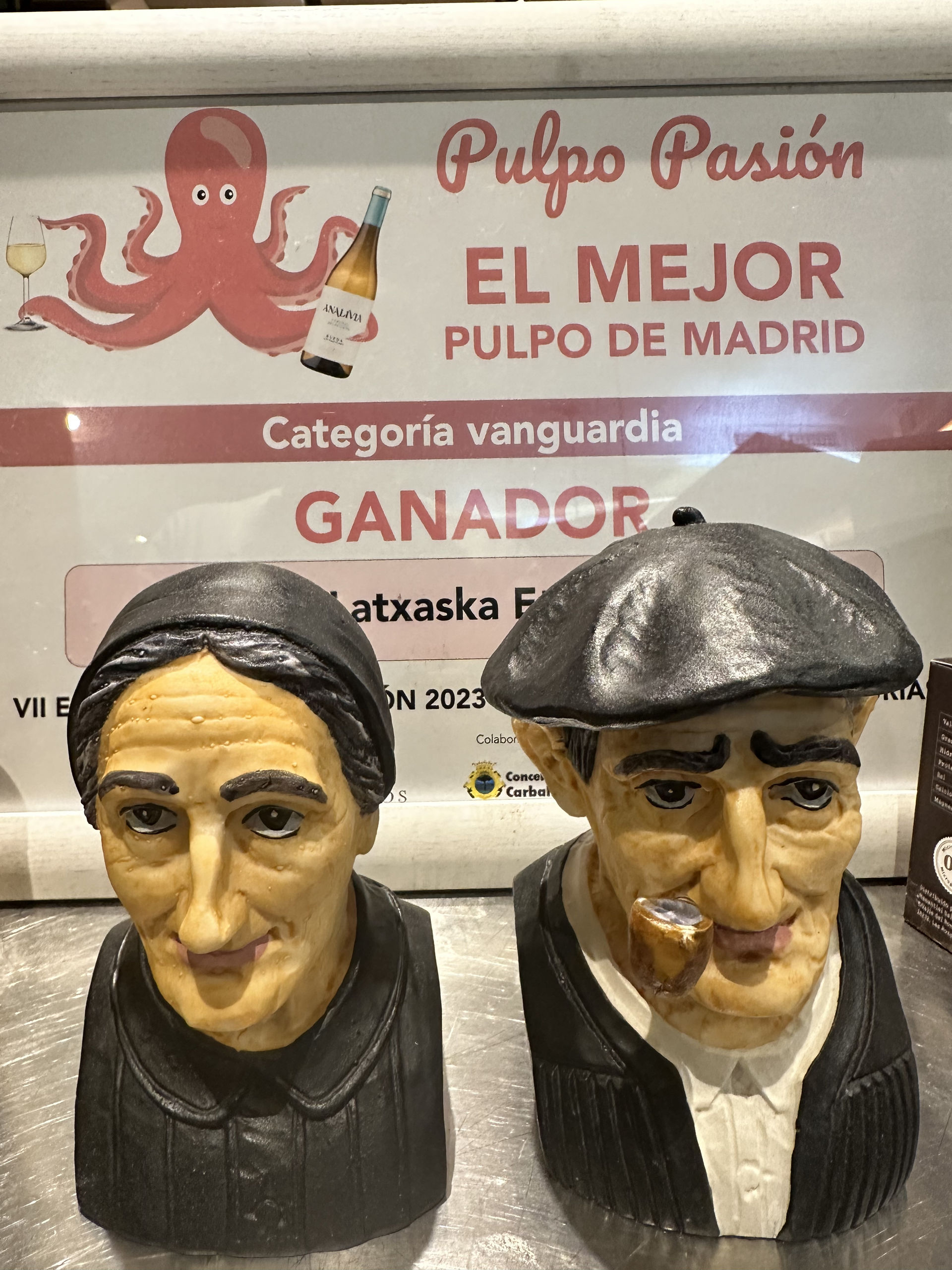 Premio en la séptima ruta gastronómica de Pulpo Pasión organizada por Nacho Sandoval para potenciar el turismo gastronómico en nuestro país ha otorgado el primer premio al mejor pulpo de vanguardia de Madrid a Latxaska Etxea. Un merecido reconocimiento a su propuesta de pulpo a la brasa, muselina de patata, mojo picón y aire de Albariño.