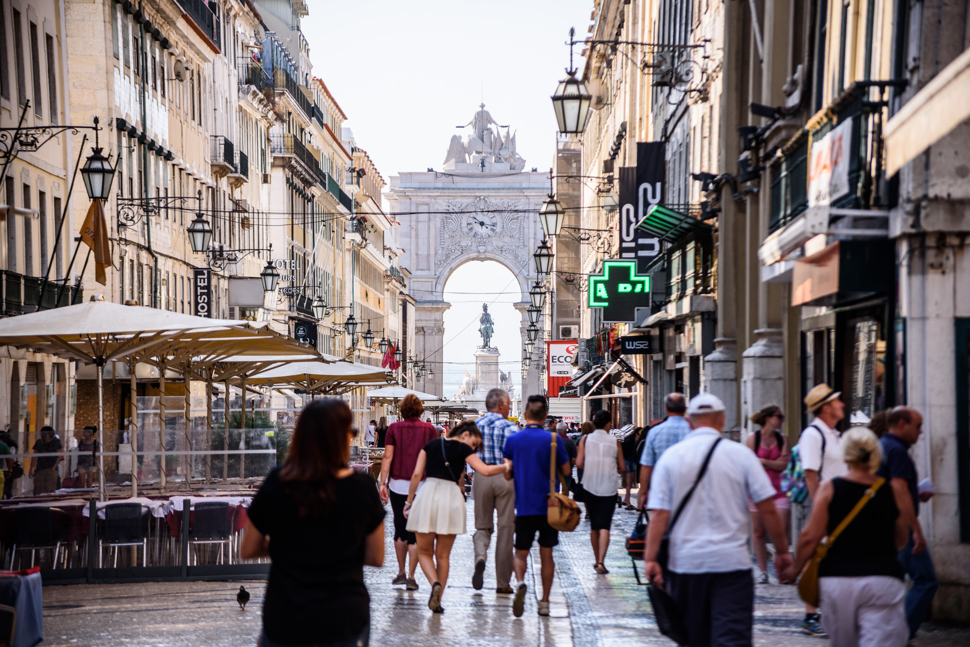 La Baixa es el barrio más céntrico e importante de Lisboa. Fue reconstruido tras el terremoto del siglo XVIII. Una de las principales calles de la capital lisboeta es la Rua Augusta. Repleta de tiendas y cafeterías, esta vía lleva directamente a la plaza del Comercio.