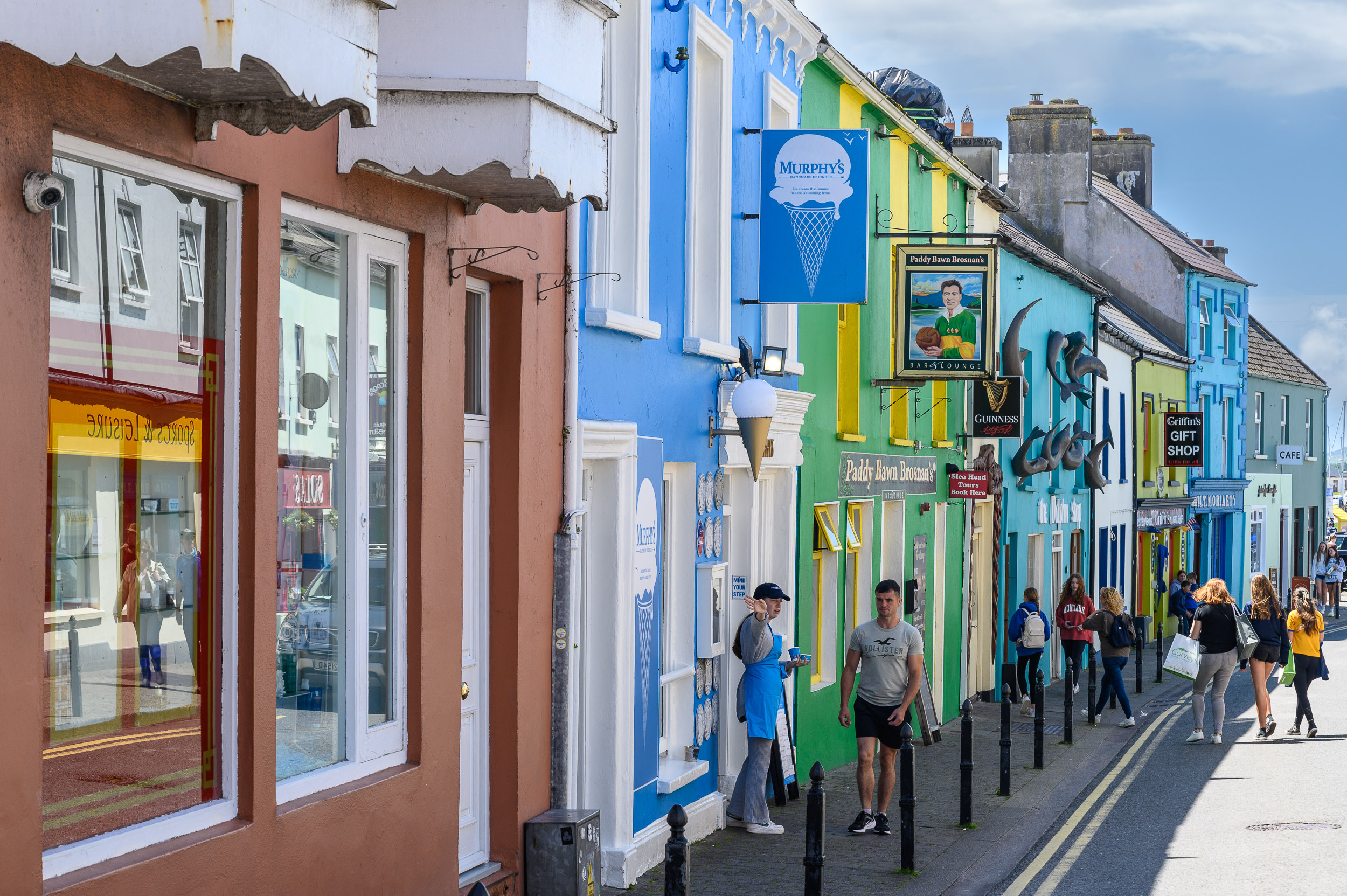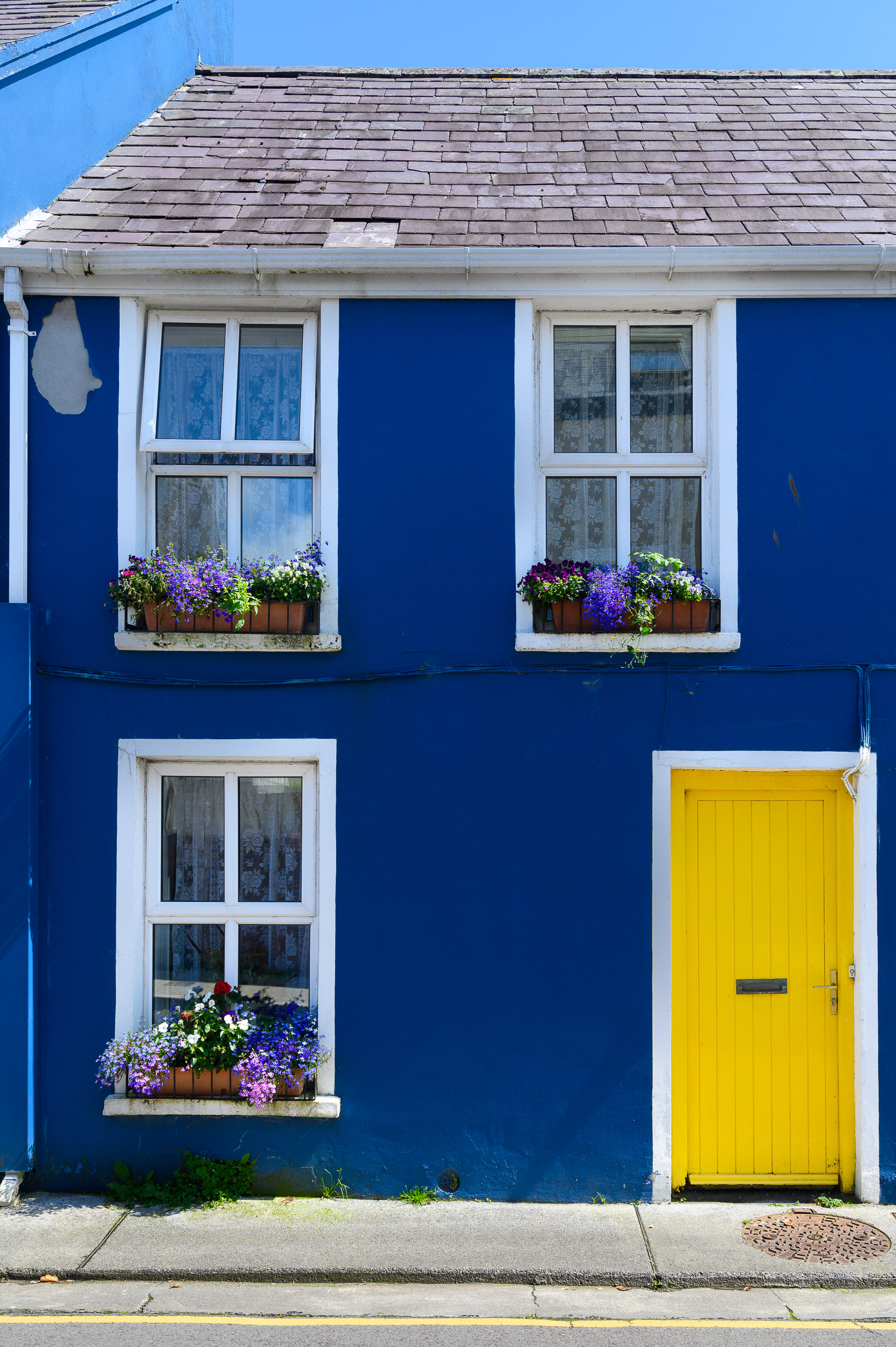 Colores fuertes en las paredes y aún más llamativos en las puertas: típico del oeste de Irlanda.