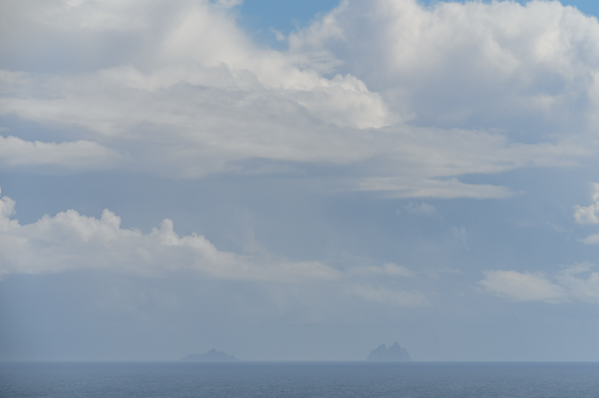 Las islas Skellig, famosas por su aparición estelar en Star Wars, vistas desde la costa.