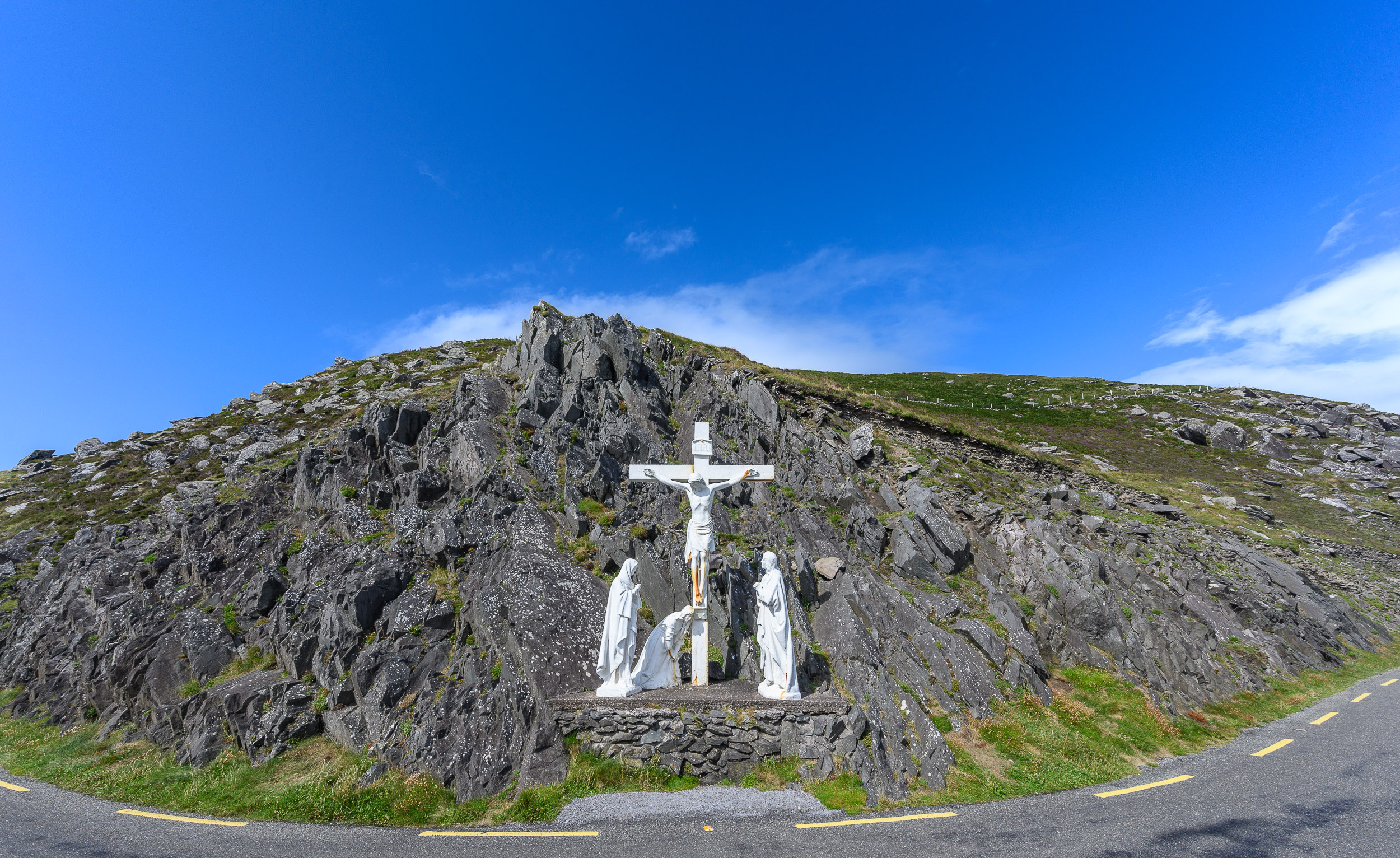 El conjunto escultórico que da testimonio de la religiosidad irlandesa y, al mismo tiempo, crea un rincón un tanto surrealista.