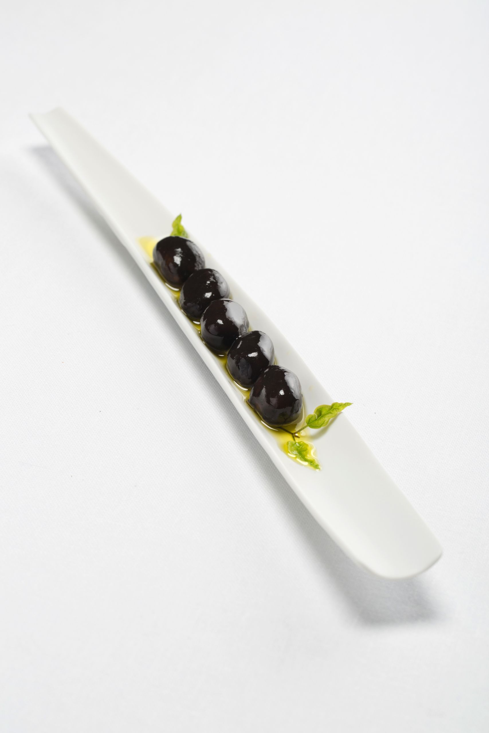Tras la infusión fría llegan las aceitunas negras, que son unas esferificaciones de pimiento, queso y anchoa que te explotan en la boca y la llenan de sabor.