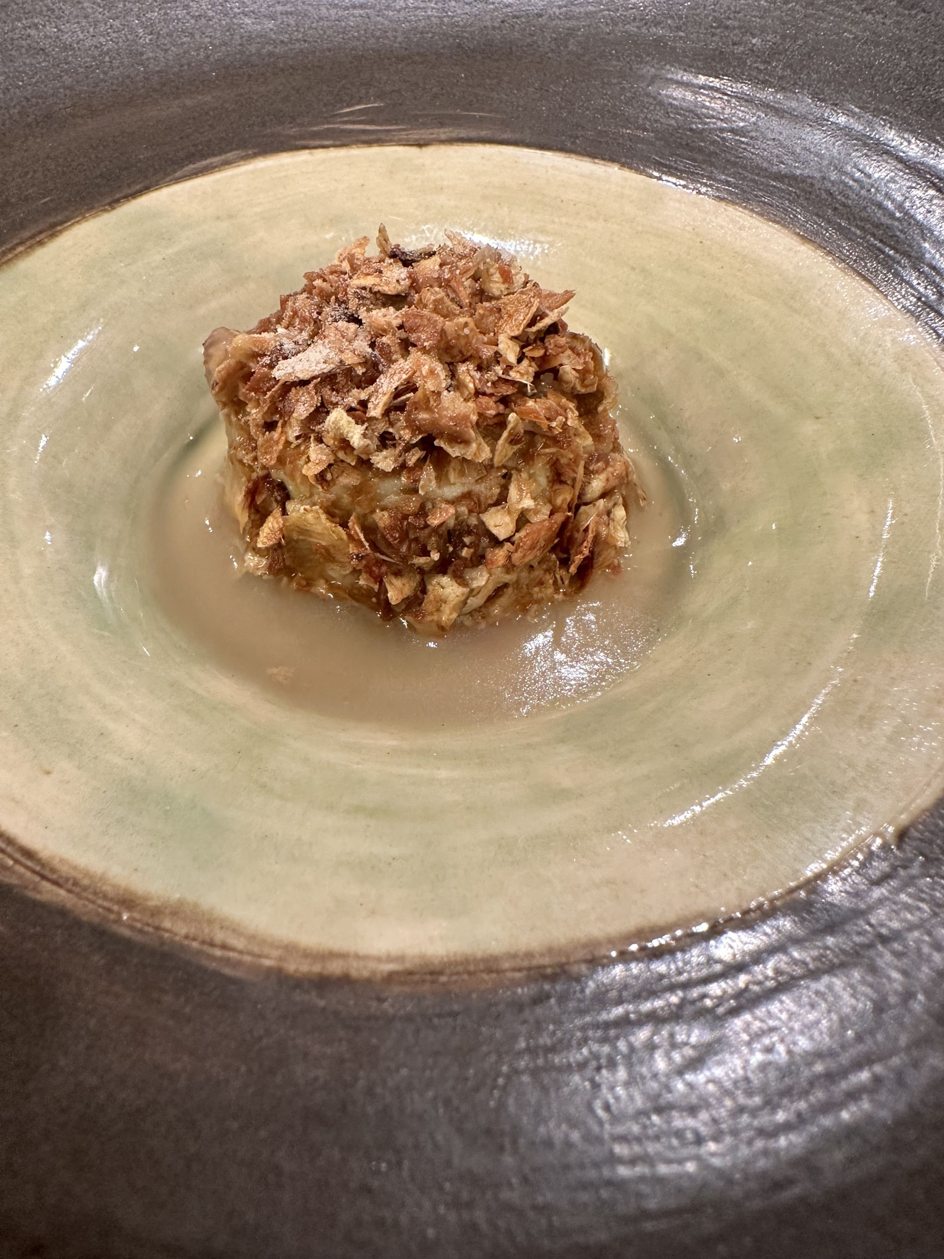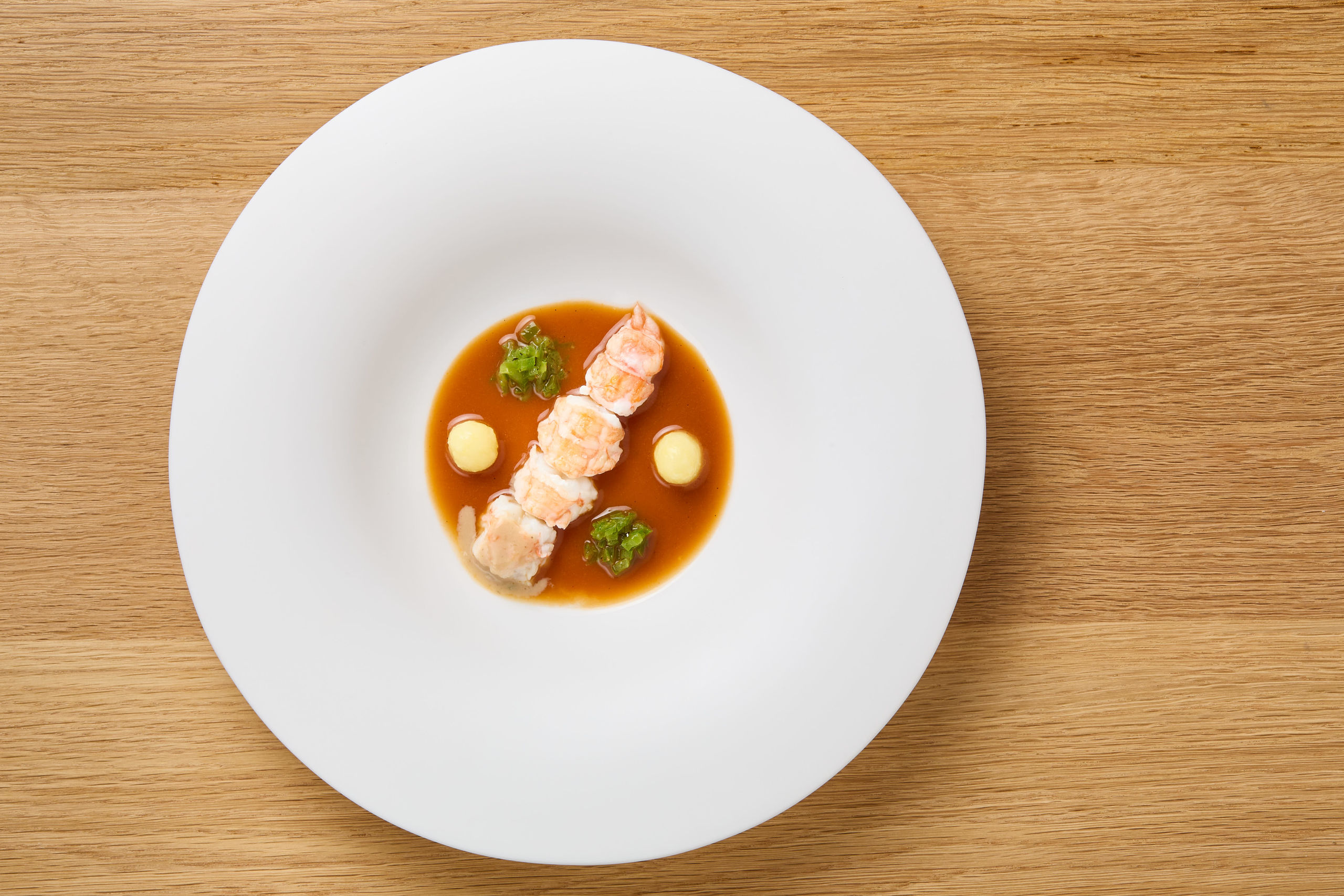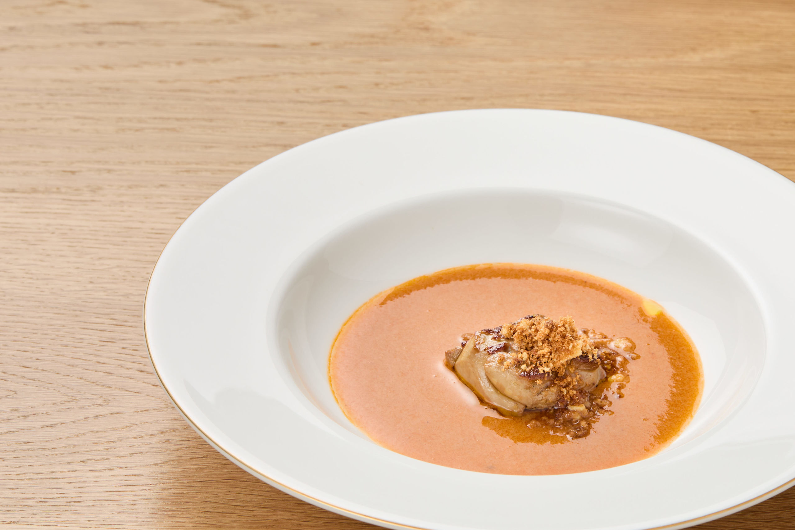 El tercer capítulo, Memoria, comienza con una sabrosísima sopa de cabracho con foie y espéculos.