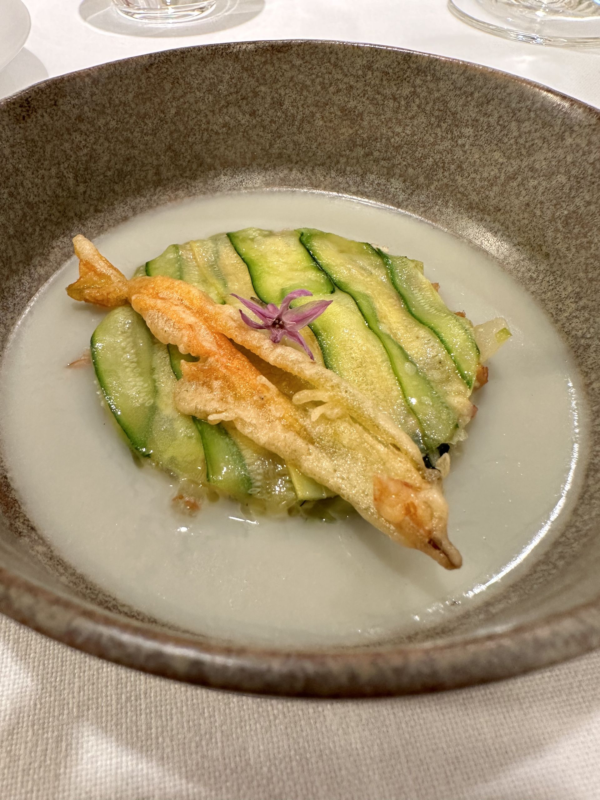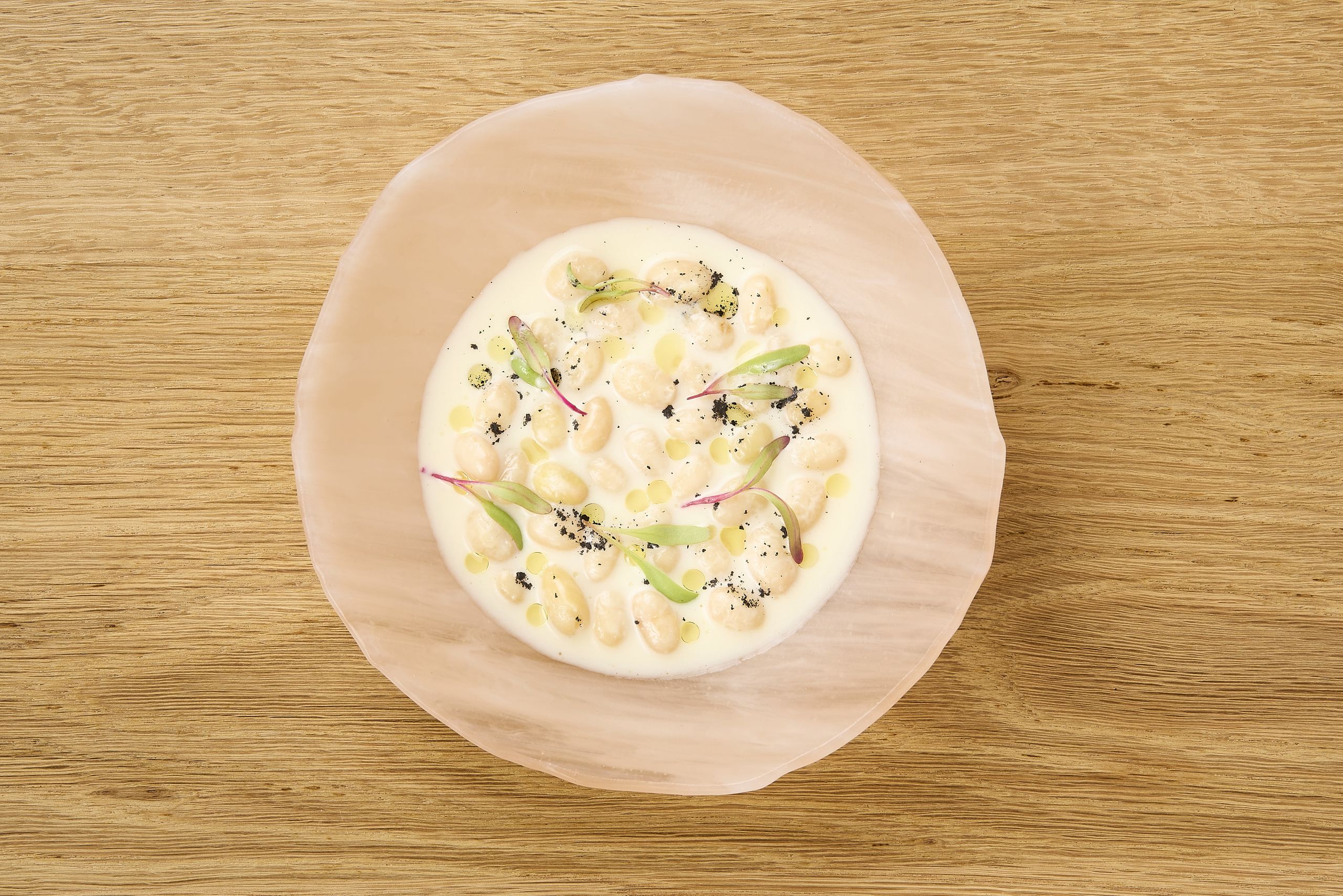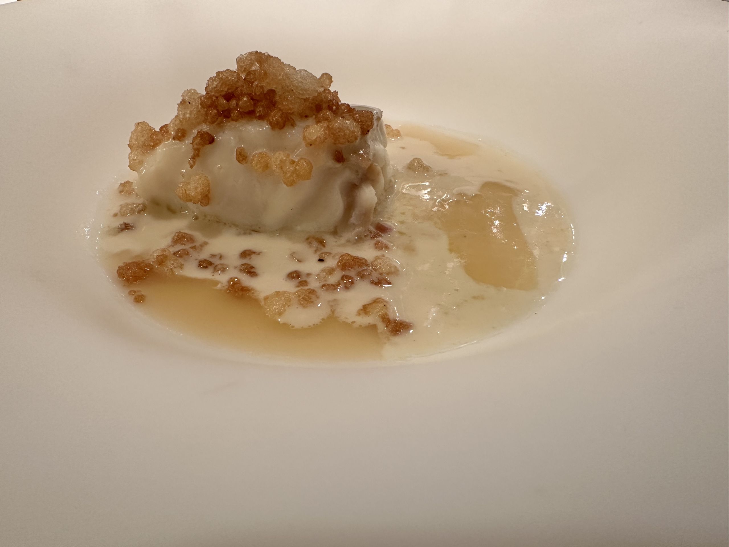 El tercer capítulo, Memoria, comienza con una sabrosísima sopa de cabracho con foie y espéculos.