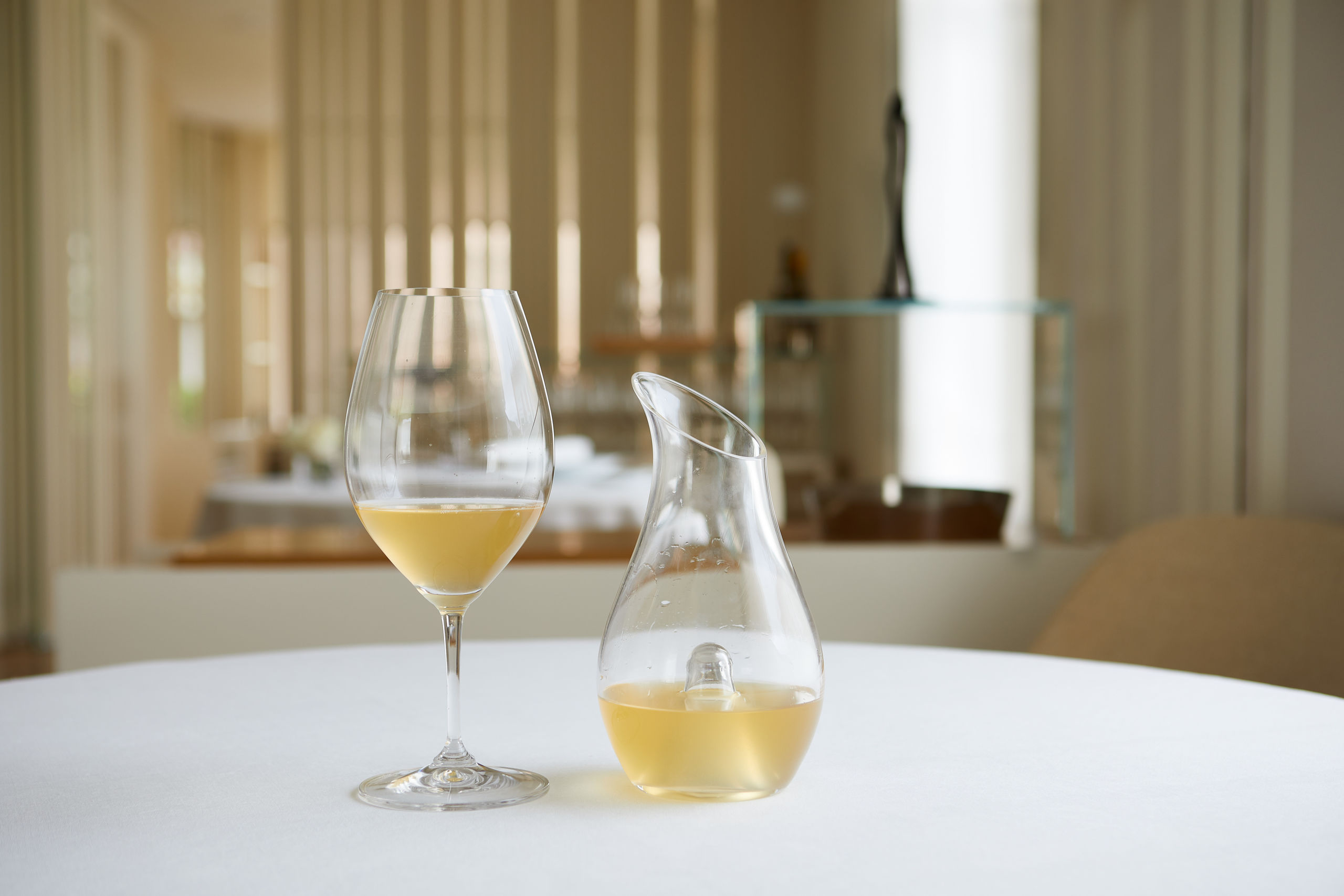 El menú degustación de El Portal de Echaurren comienza con los ricos aperitivos servidos en el salón de la galería, situado "frente a la casa" de la iglesia de Santa María la Mayor, que es el significado en vasco de Echaurren, y que empieza con una infusión fría de hierbas a modo de vino blanco.