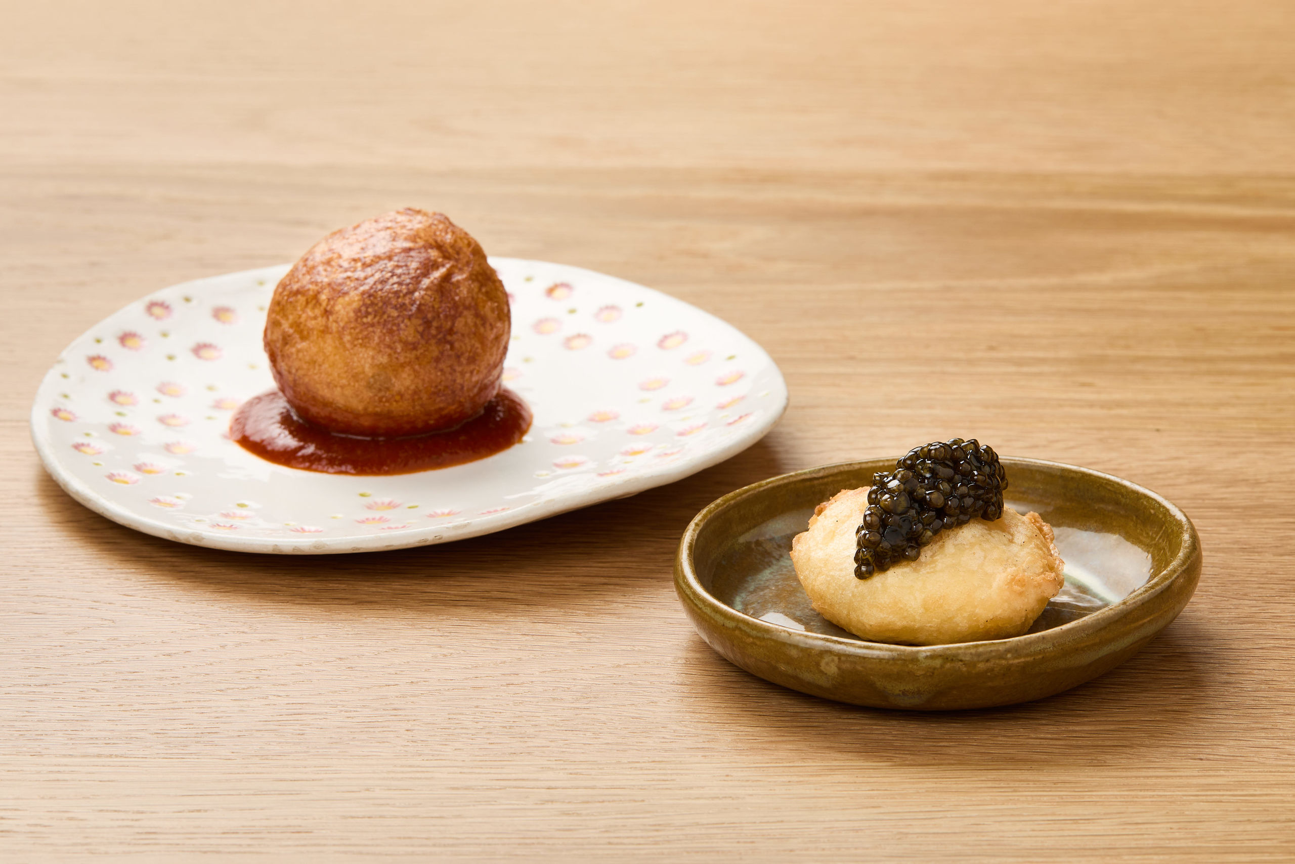 Las afamadas croquetas de pollo y jamón de Echaurren, hechas con mucho mimo y dedicándolas mucho tiempo.