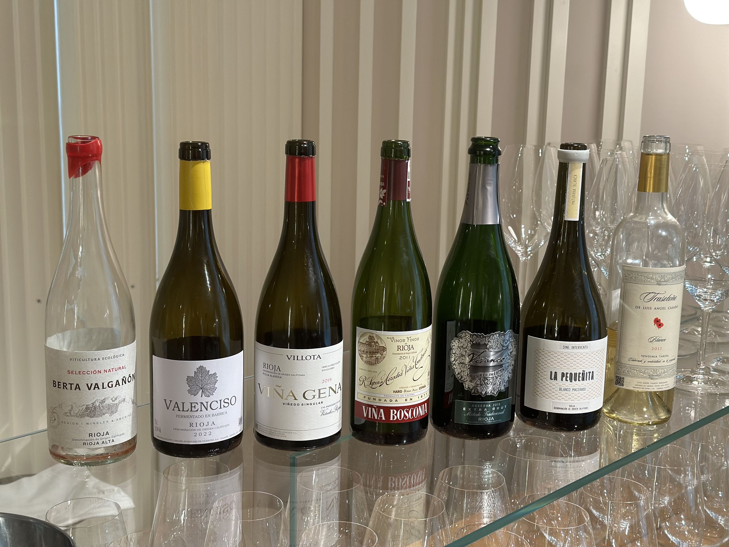 El acertado maridaje a cargo de Chefe estuvo compuesto por Vivanco Cuveé, Valenciso Blanco 2022, La Pequeñita, Berta Valgañón Rosado, Viña Bosconia Reserva 2011, Viña Gena Villota y Trasotoño.