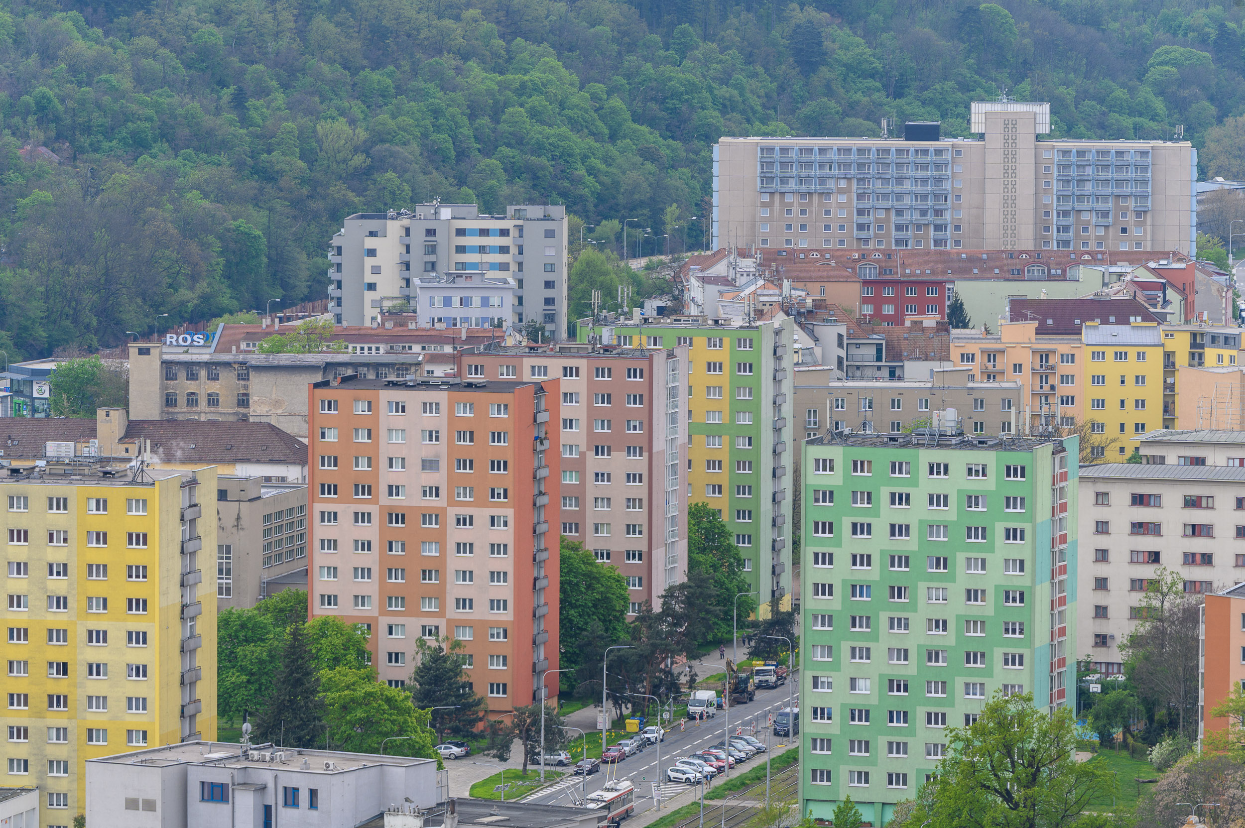 Edificios de la época comunista vistos también desde el castillo de Brno.