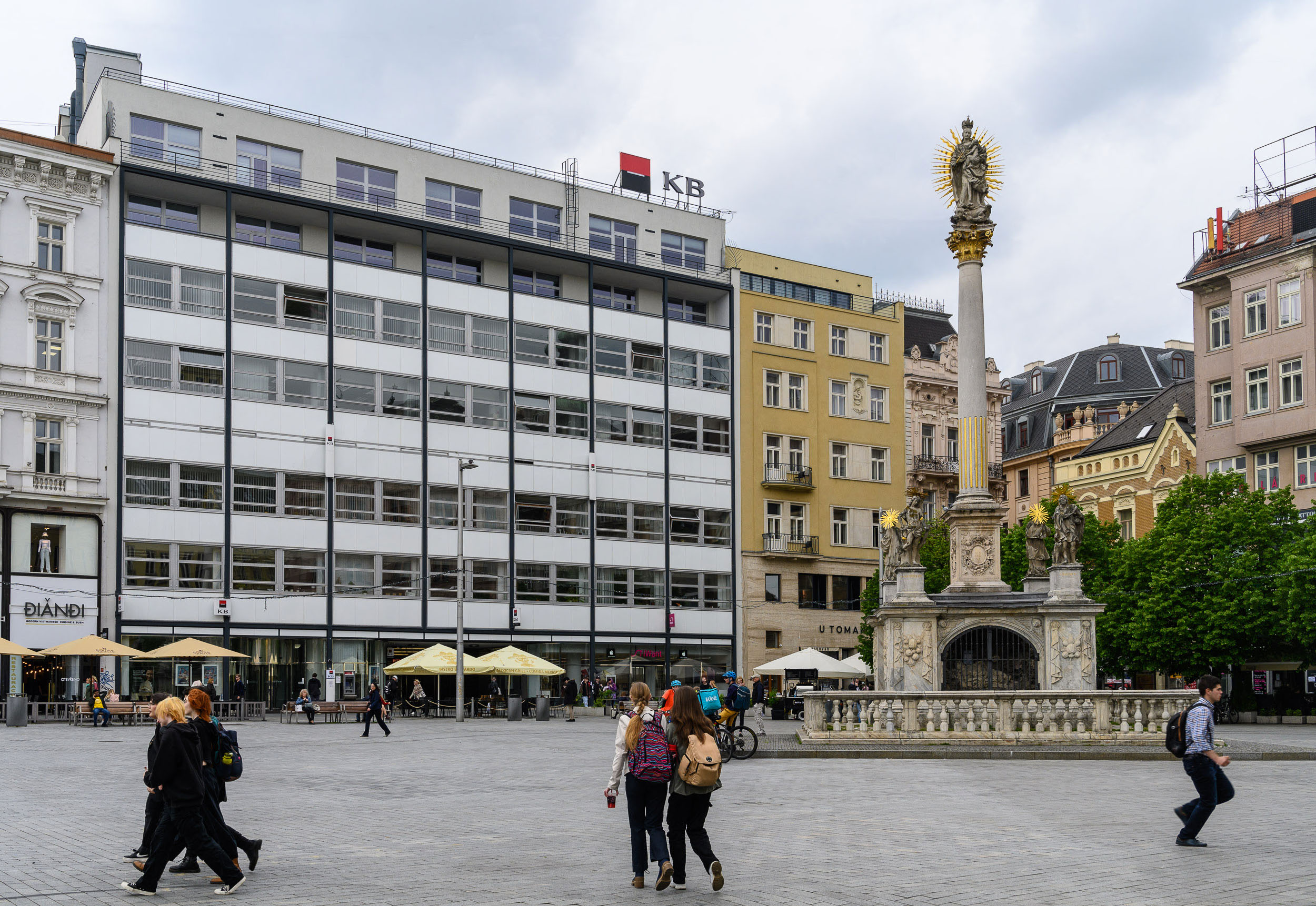 El edifico de la Banca de Moravia, otro de los hitos arquitectónicos de Brno.
