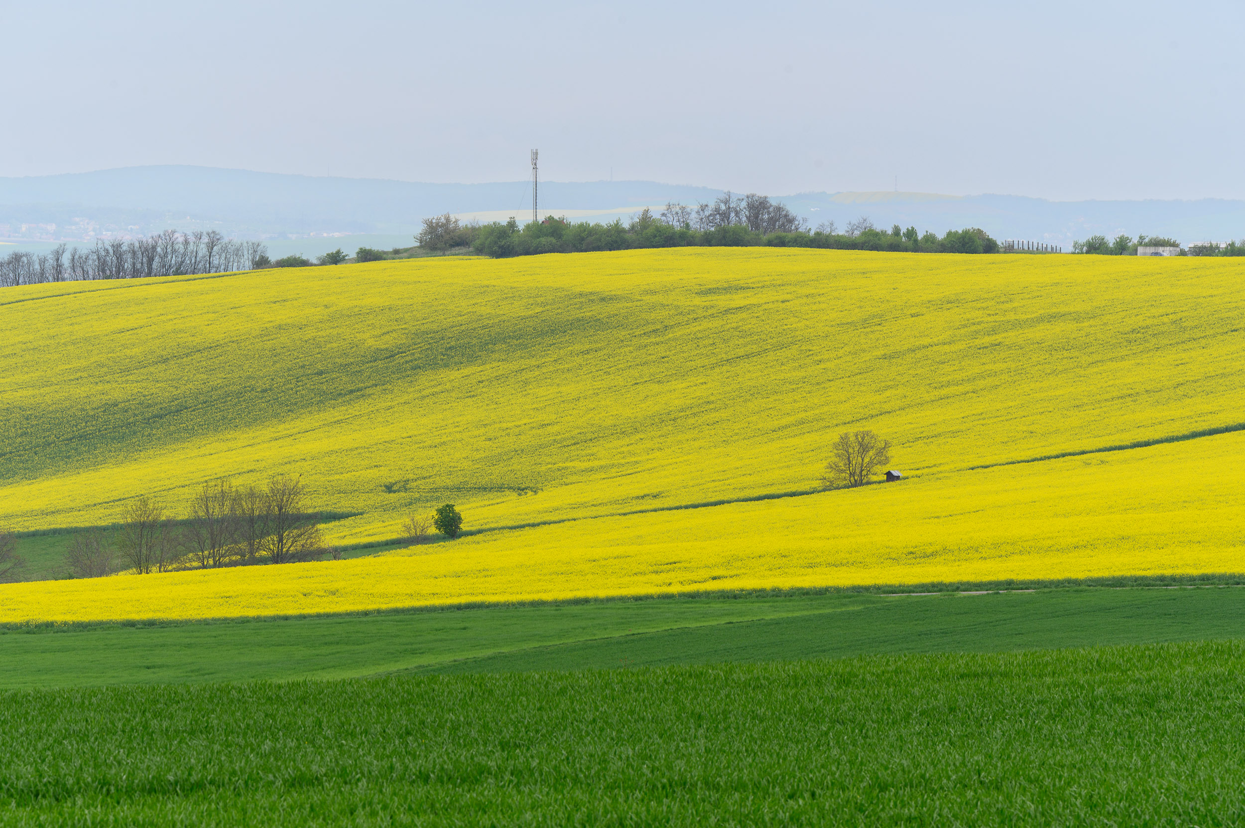 Campos de colza en flor en la zona donde se libró la batalla de Austerlitz.