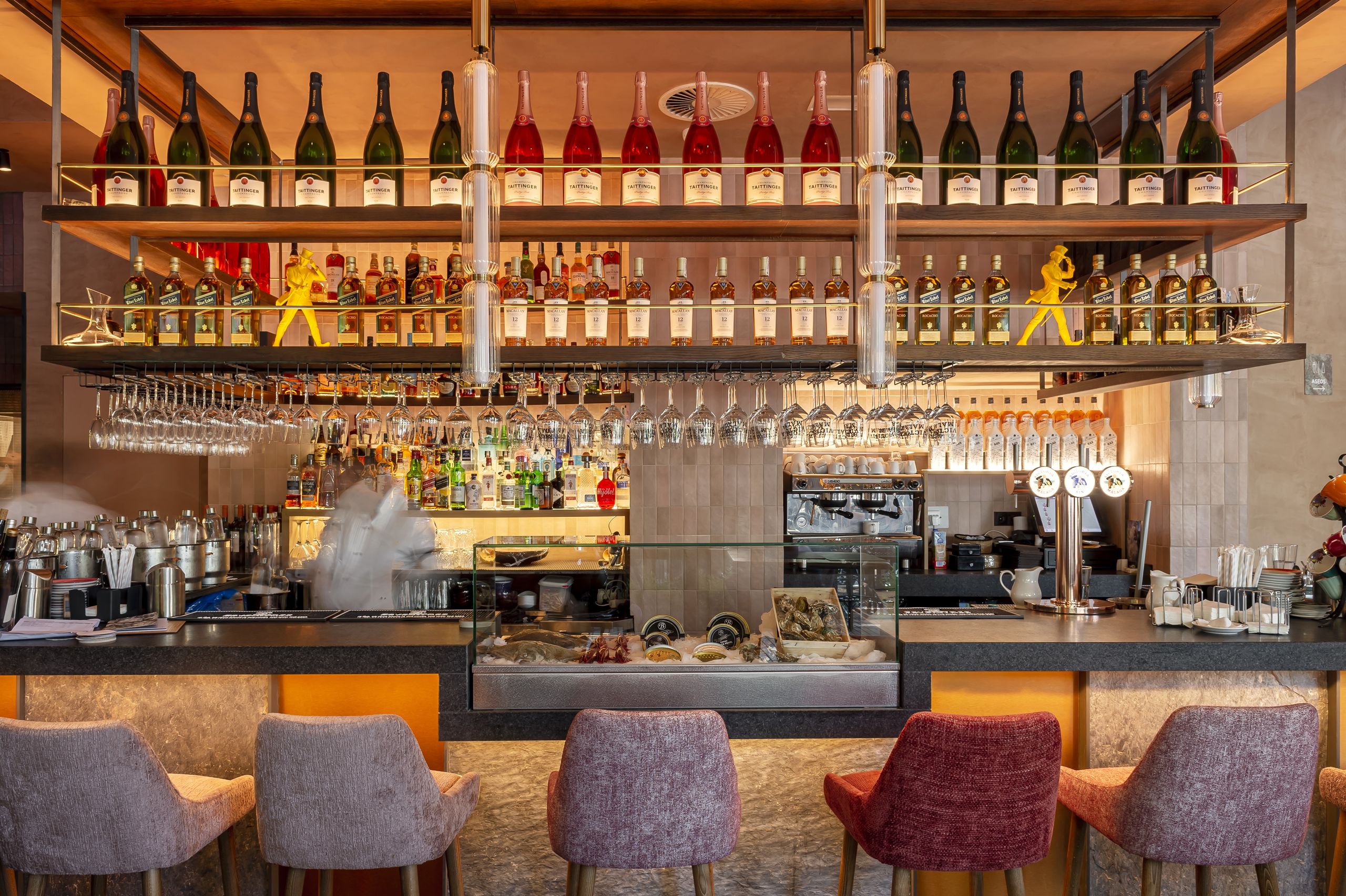 También tiene tres terrazas, dos abiertas y una cerrada, nada más entrar te encuentras con su imponente barra y la zona informal con mesas altas.