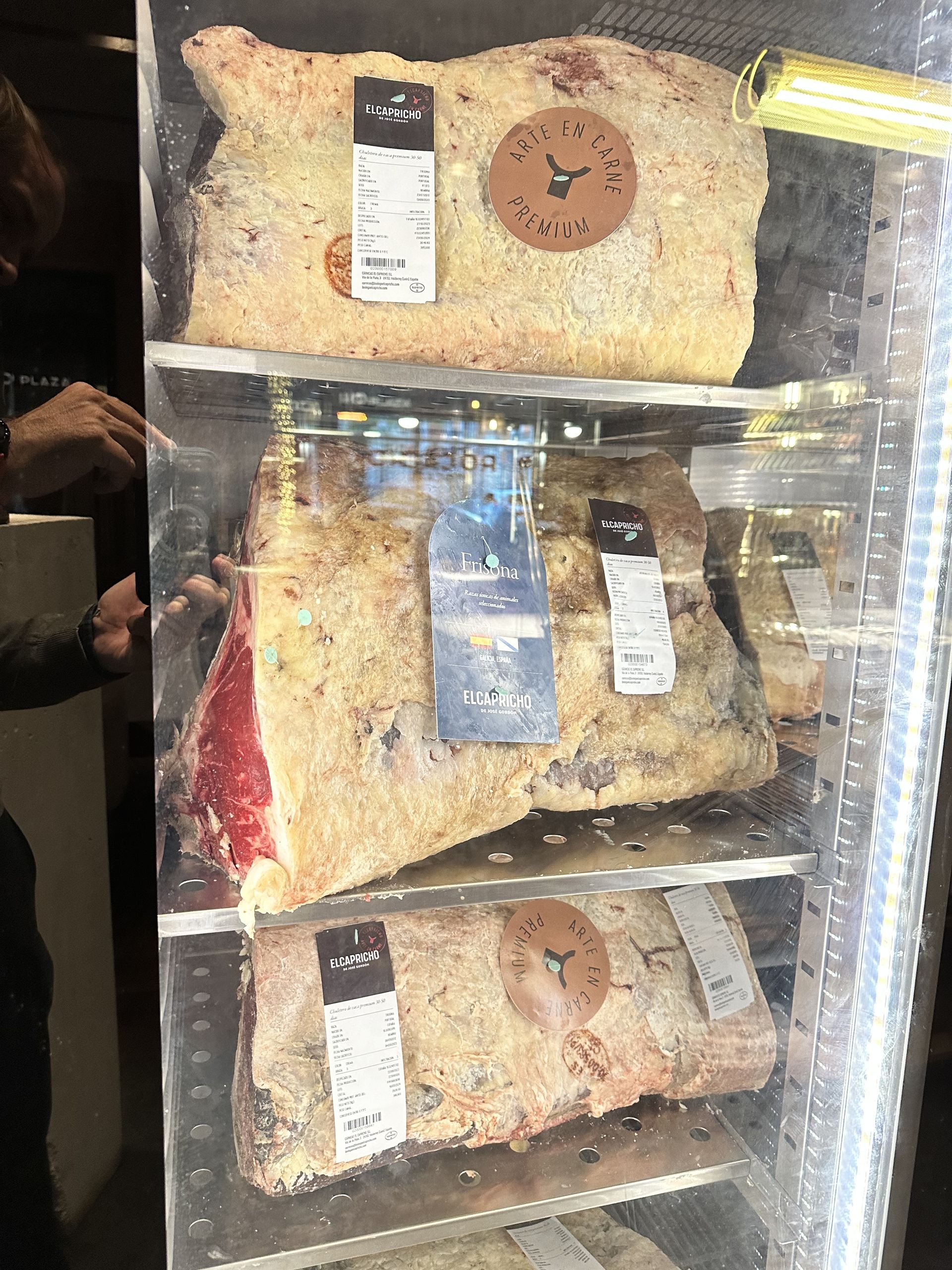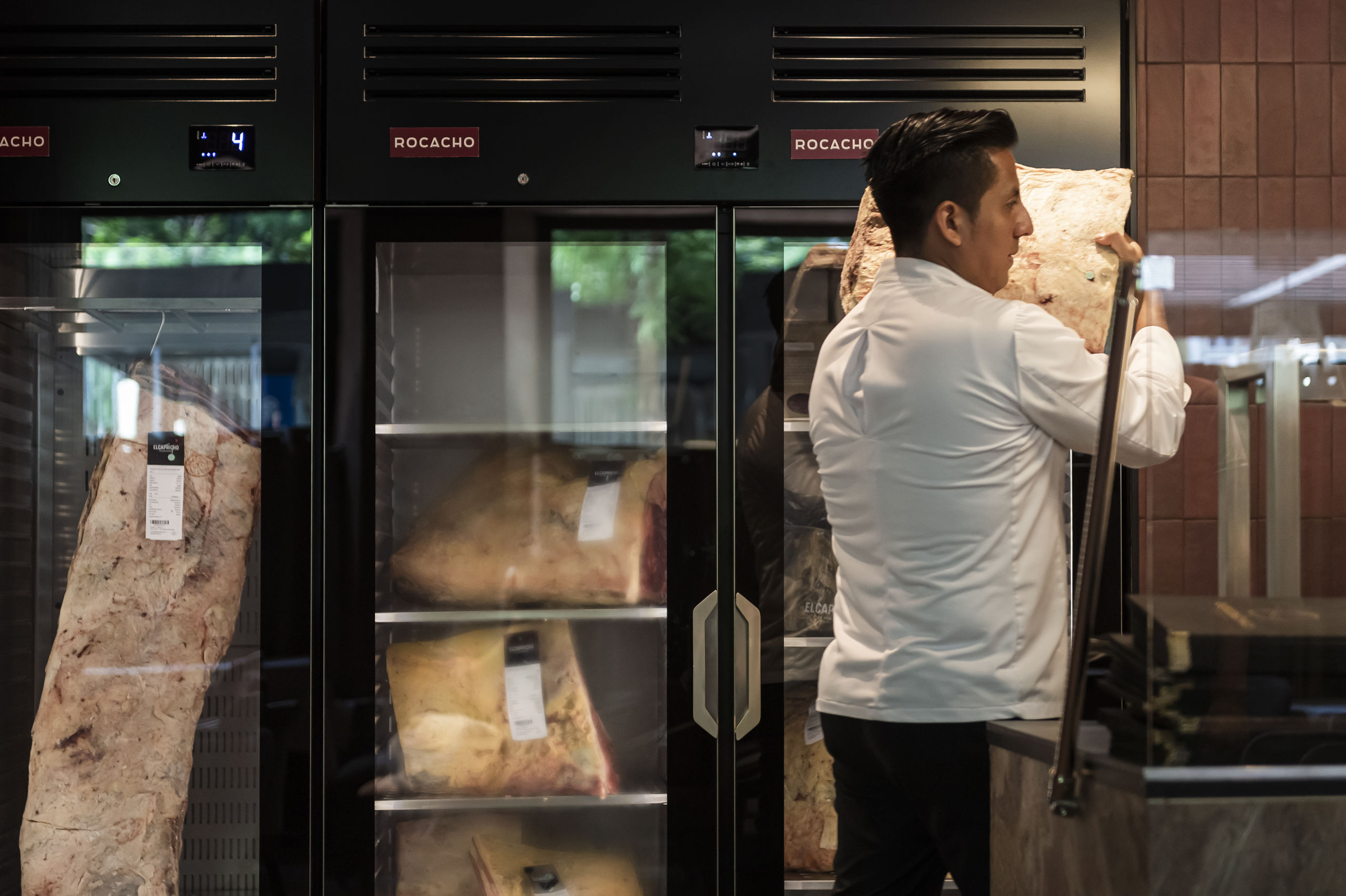 En la cámara que tienen a la vista en el restaurante terminan de madurarse las carnes de El Capricho.