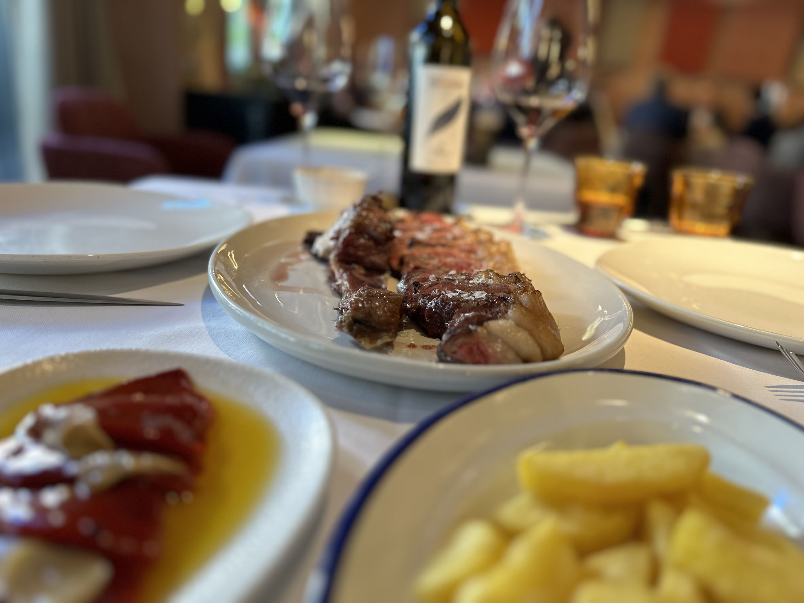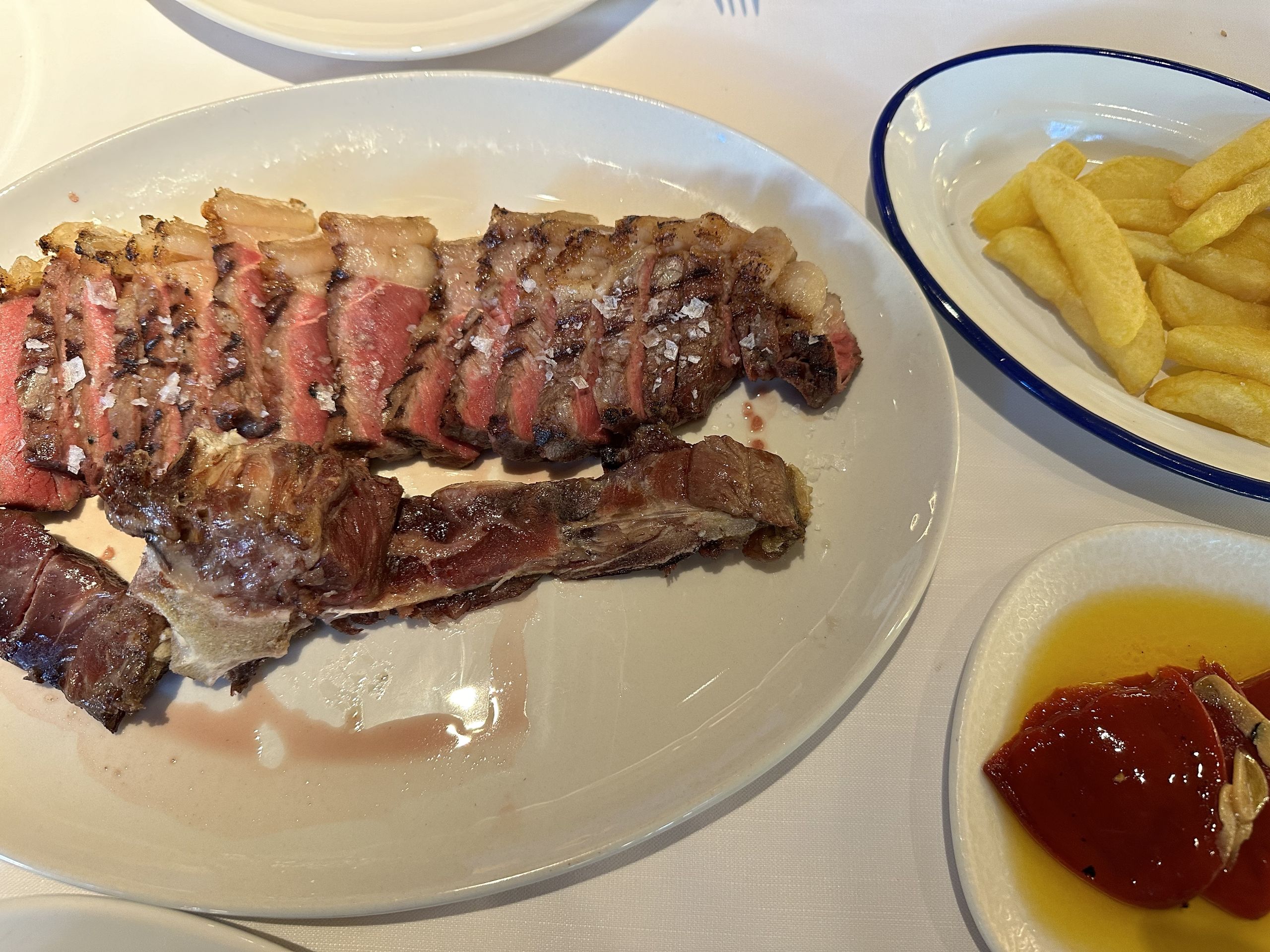 Además, a la carne la puedes acompañar con unas maravillosas patatas fritas y unos muy buenos pimientos de piquillo de Navarra.
