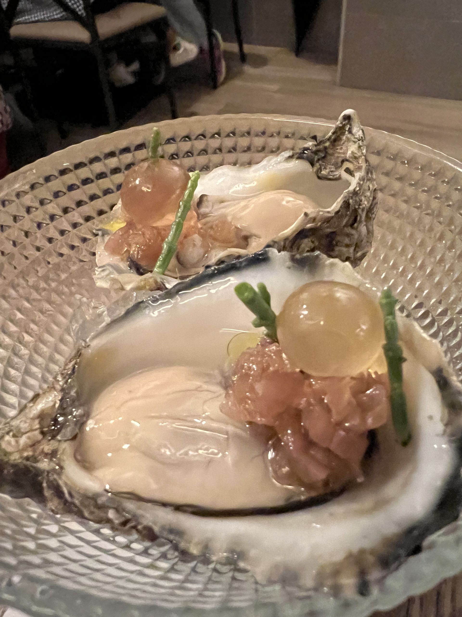 En Valdivieso, el producto de calidad es la nota característica de su carta. Como con estas ostras en las que también se puede ver la técnica del chef con esas esferificaciones.