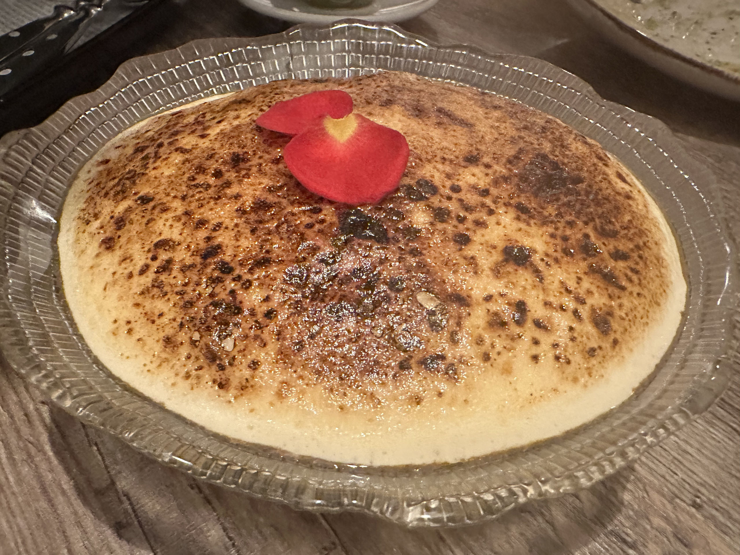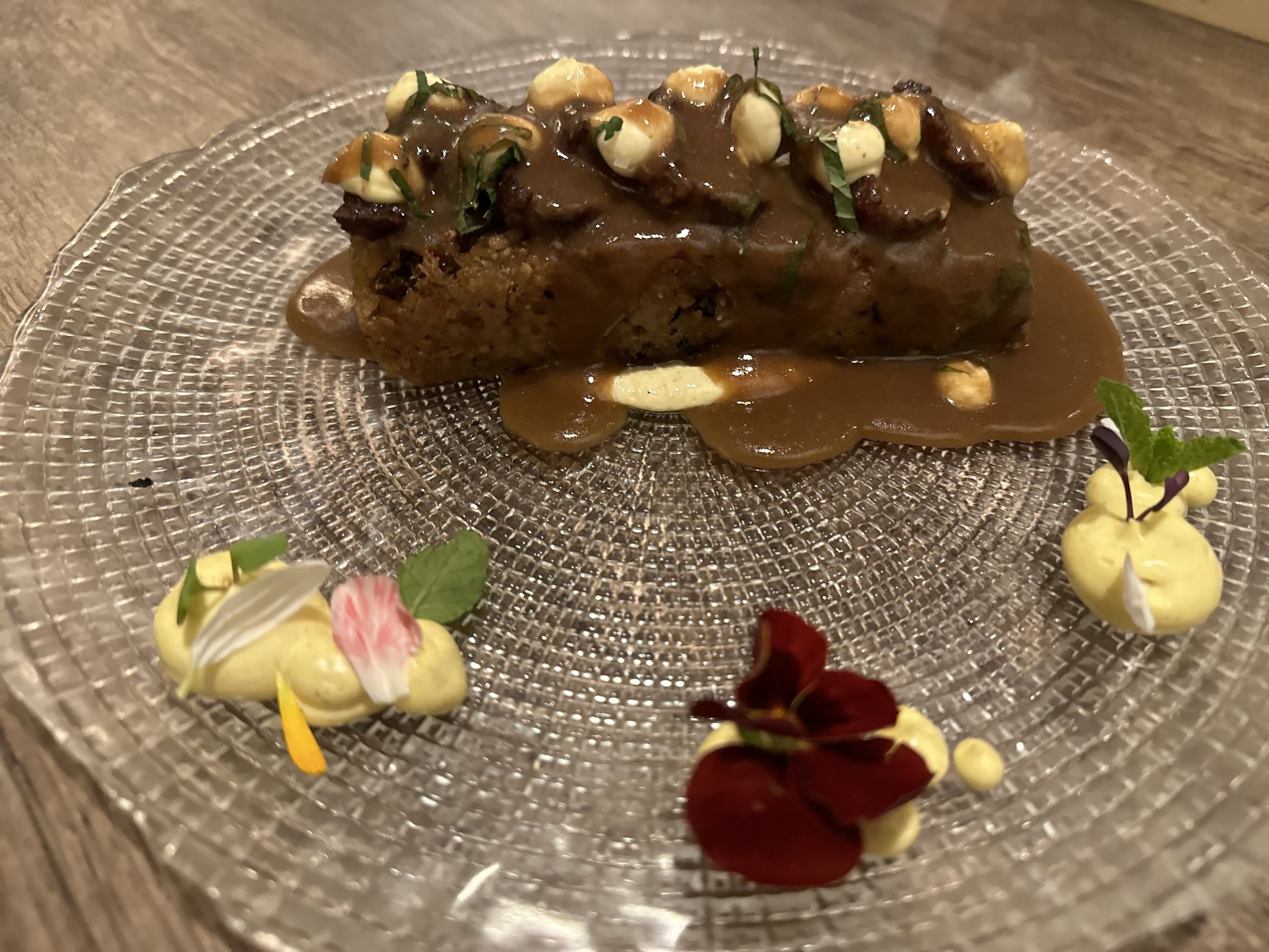 Otro platazo que llega y terminan en la mesa es el de las setas shitake con ajo negro y espuma de alioli de miel. Aquí te encuentras en cada bocado una conjunción perfecta de sabores, entre el salteado de setas shitake con ajo negro de las Pedroñeras al que se le añade un poco de kimchi y soja. La cobertura de espuma de alioli de miel que terminan flambeando en la mesa le da una untuosidad y un sabor al conjunto difícil de olvidar.