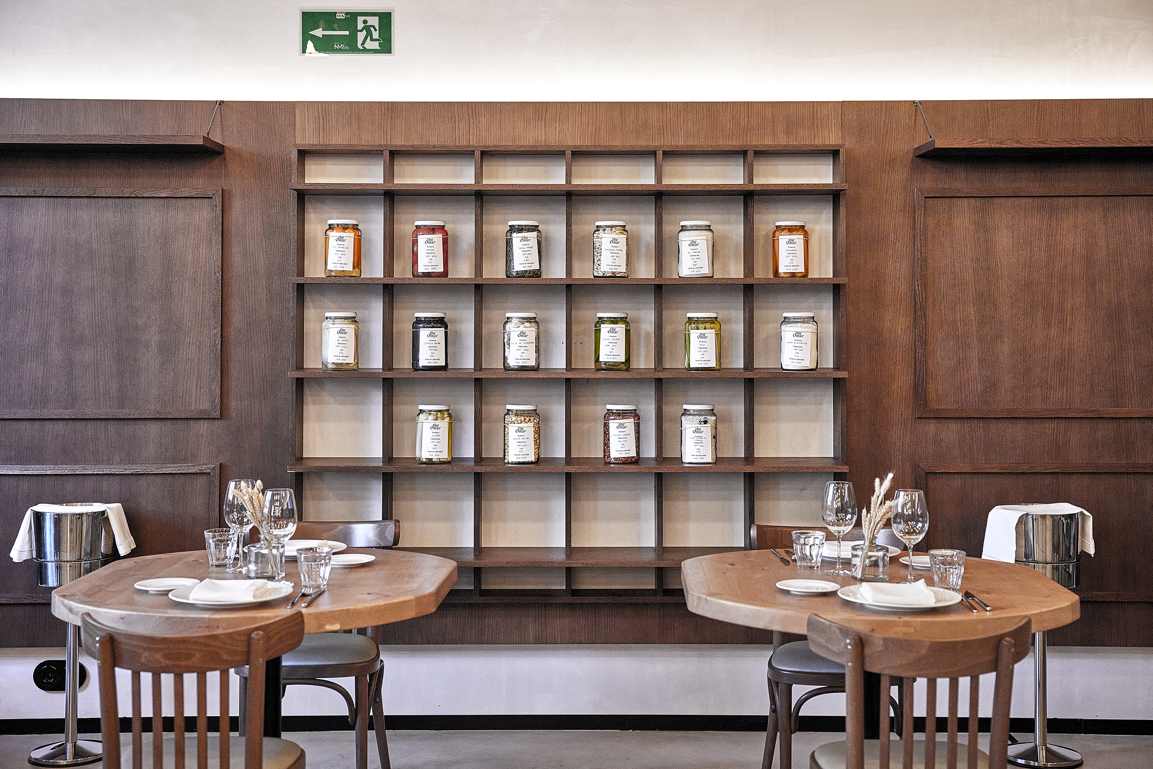 Han dotado al espacio con maderas nobles, superficies de mármol y azulejos blancos que recrean esos espacios de trabajo de la cocina y el obrador y se mimetizan con el comedor para crear un ambiente de lo más agradable.