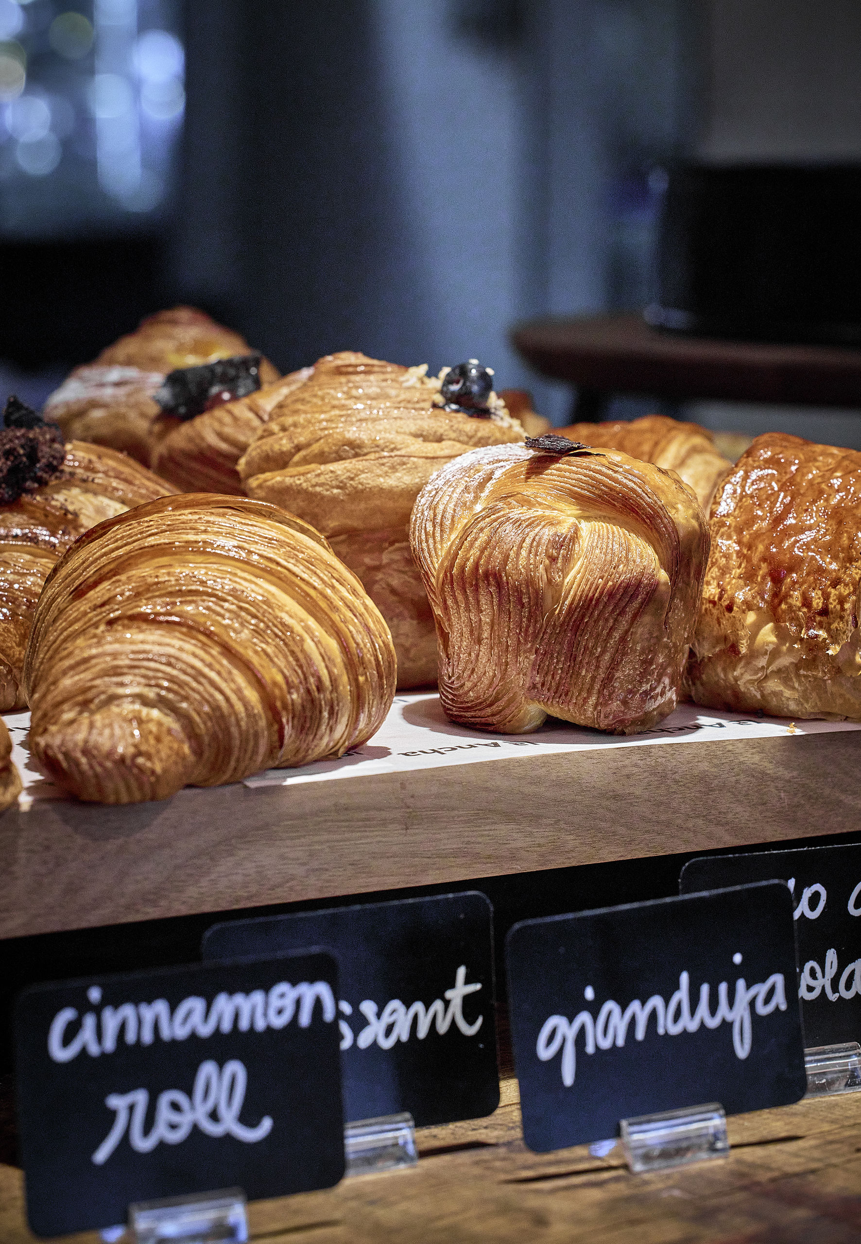 Para merendar también tienes la opción de la bollería recién salida del horno, como el cruffin relleno de limón, el cinnamon roll o las palmeras, además de sus tartas que podrás ver en su carrito y que varían a diario.