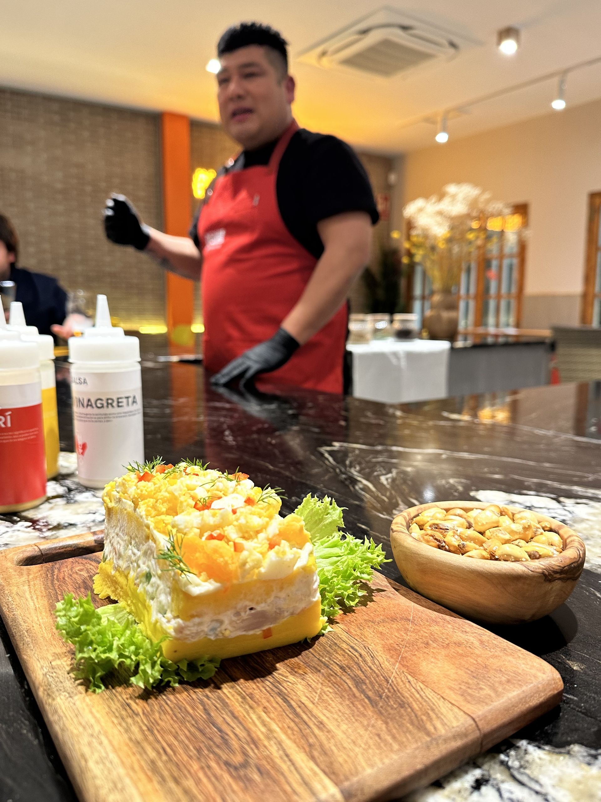 Otra buenísima opción para ir impregnándote del sabor de la cocina de Jhosef es degustar el chorizo criollo (6,90€ unidad) y acompañado por salsa chumichurri, de origen argentino pero a la que le añaden huacatay –hierba peruana aromática– y rocoto que le da el toque picantón a la salsa.