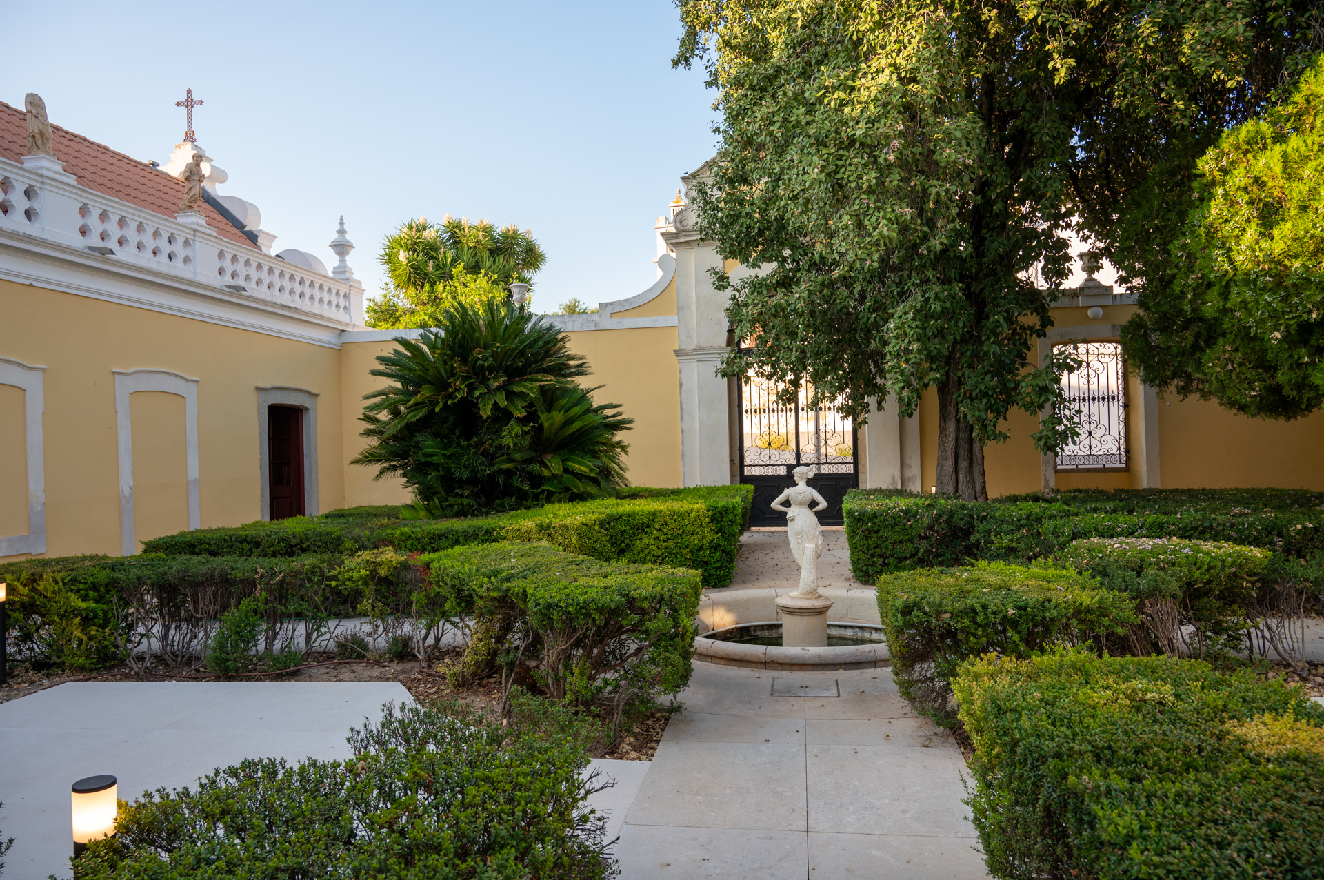 Los jardines están llenos de palmeras y naranjos, fuentes, esculturas y paneles de azulejos del siglo XIX que representan figuras mitológicas. Todos estos detalles recuerdan al Palacio de Queluz, que se inspiró en uno de los palacios más grandes del mundo, el Palacio de Versalles.