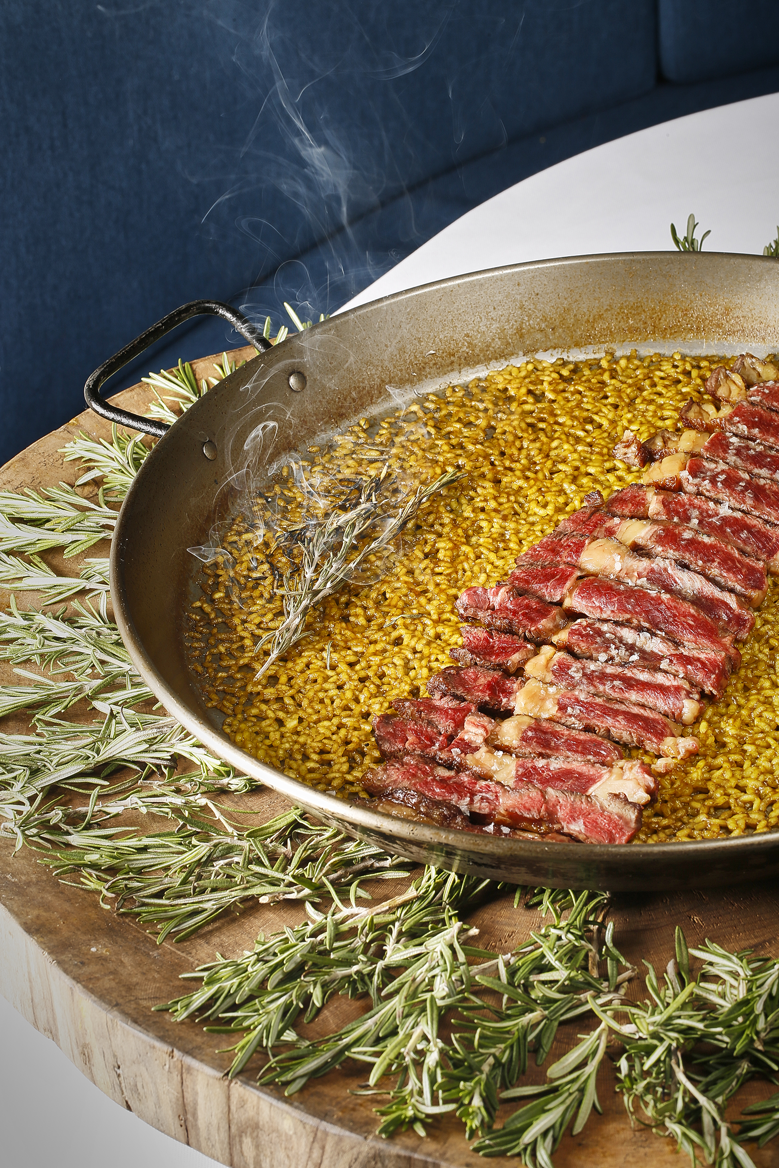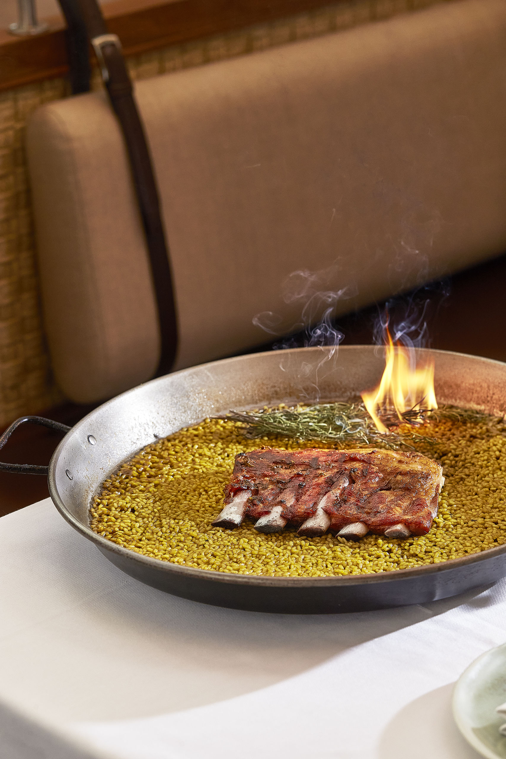 En la carta también te encuentras los arroces de estilo alicantino como este arroz seco al sarmiento con chuleta.
