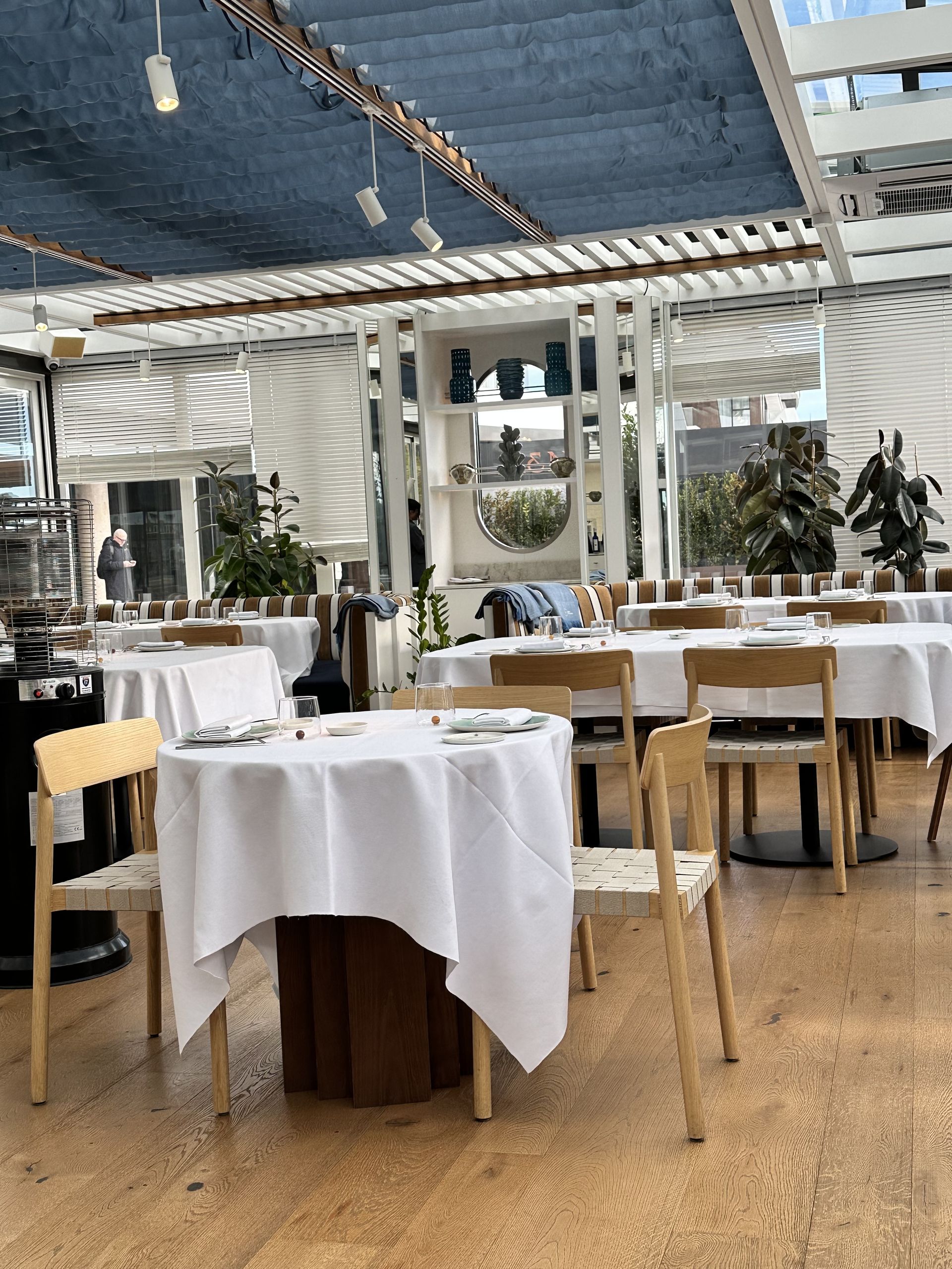 La zona interior de barra y mesas altas tiene la opción de medias raciones, perfecto para compartir y para un picoteo más informal.