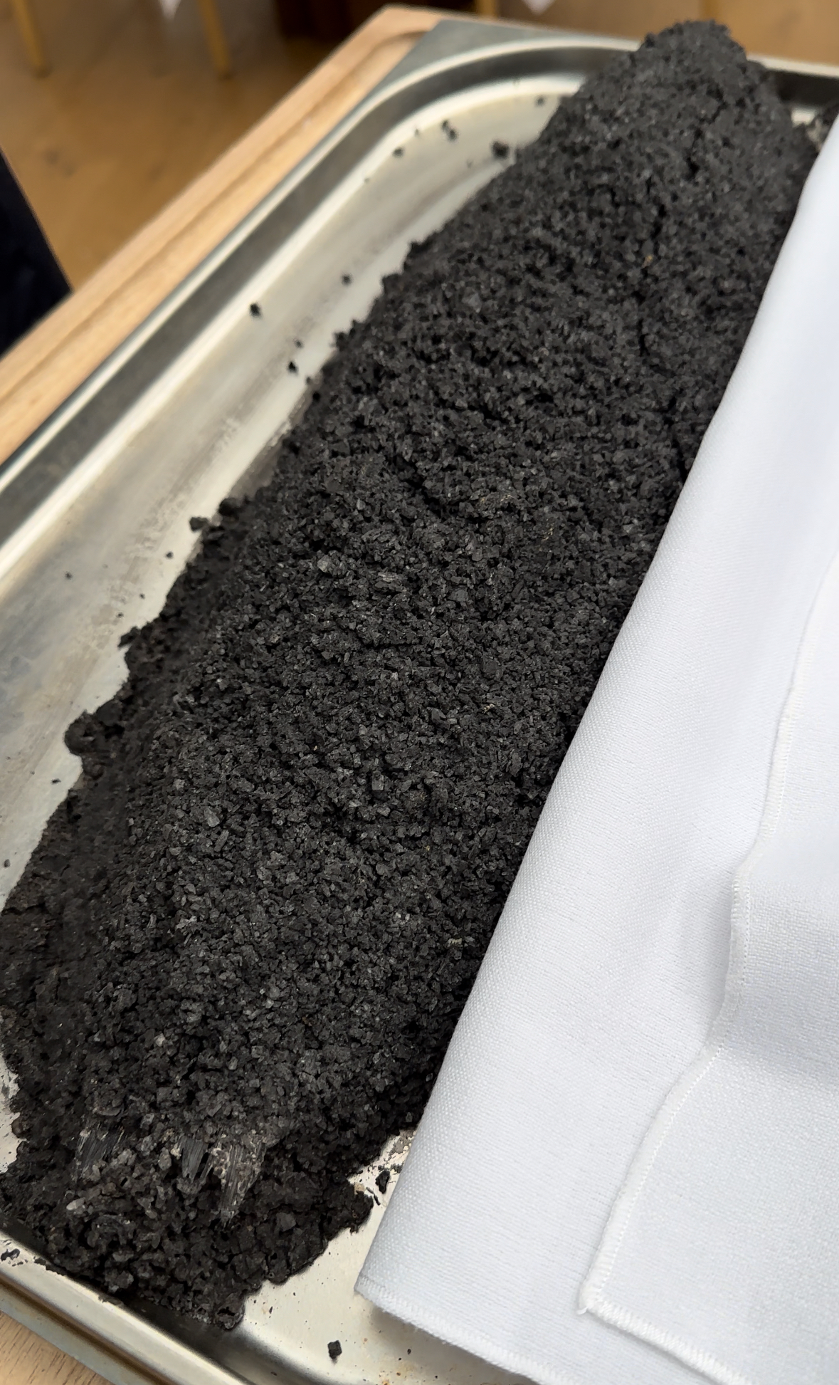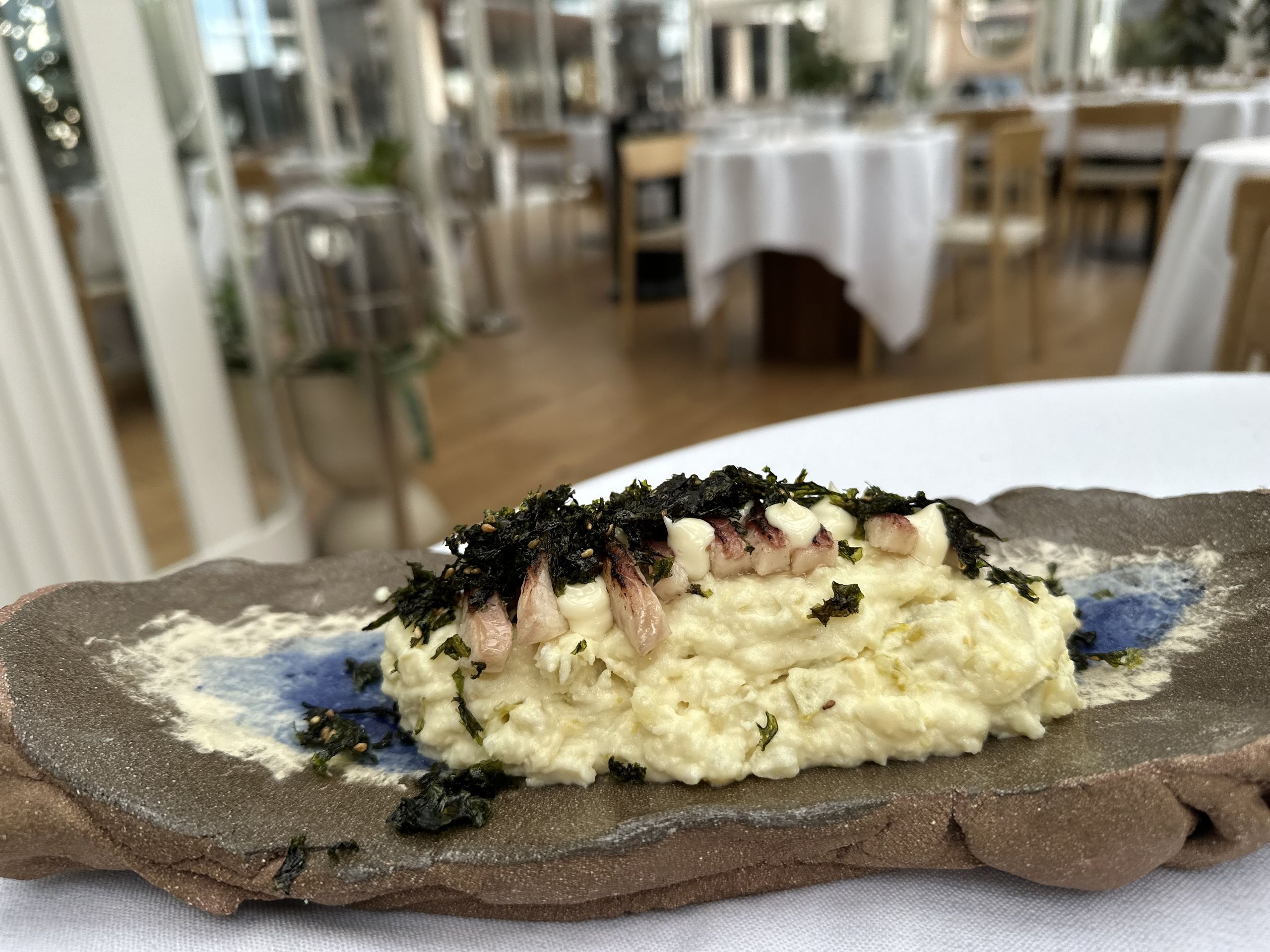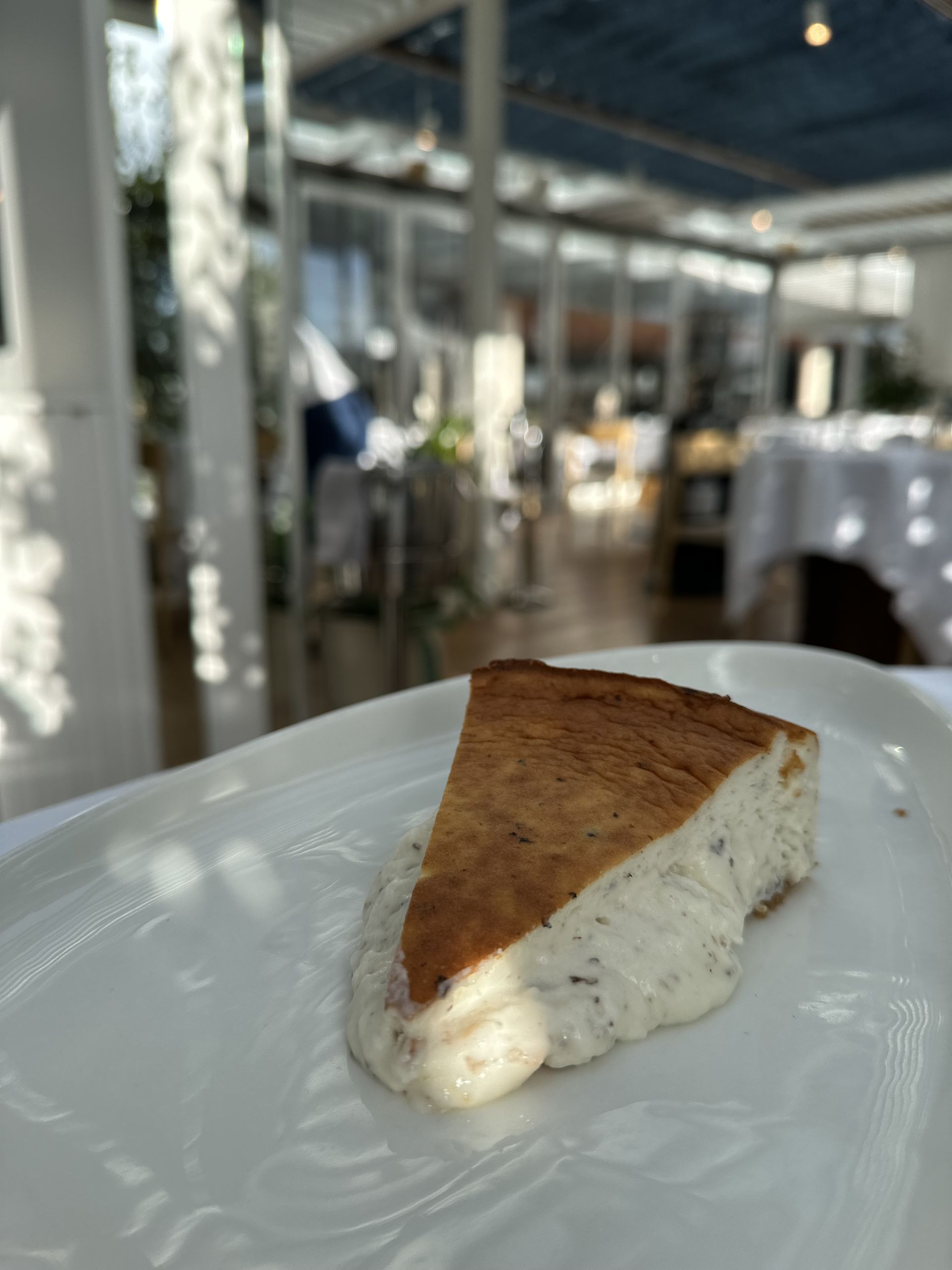 La tarta de queso de Dani García es un clásico en sus restaurantes, pero en esta ocasión probamos la tarta de queso con trufa que le da un contraste salino muy interesante.