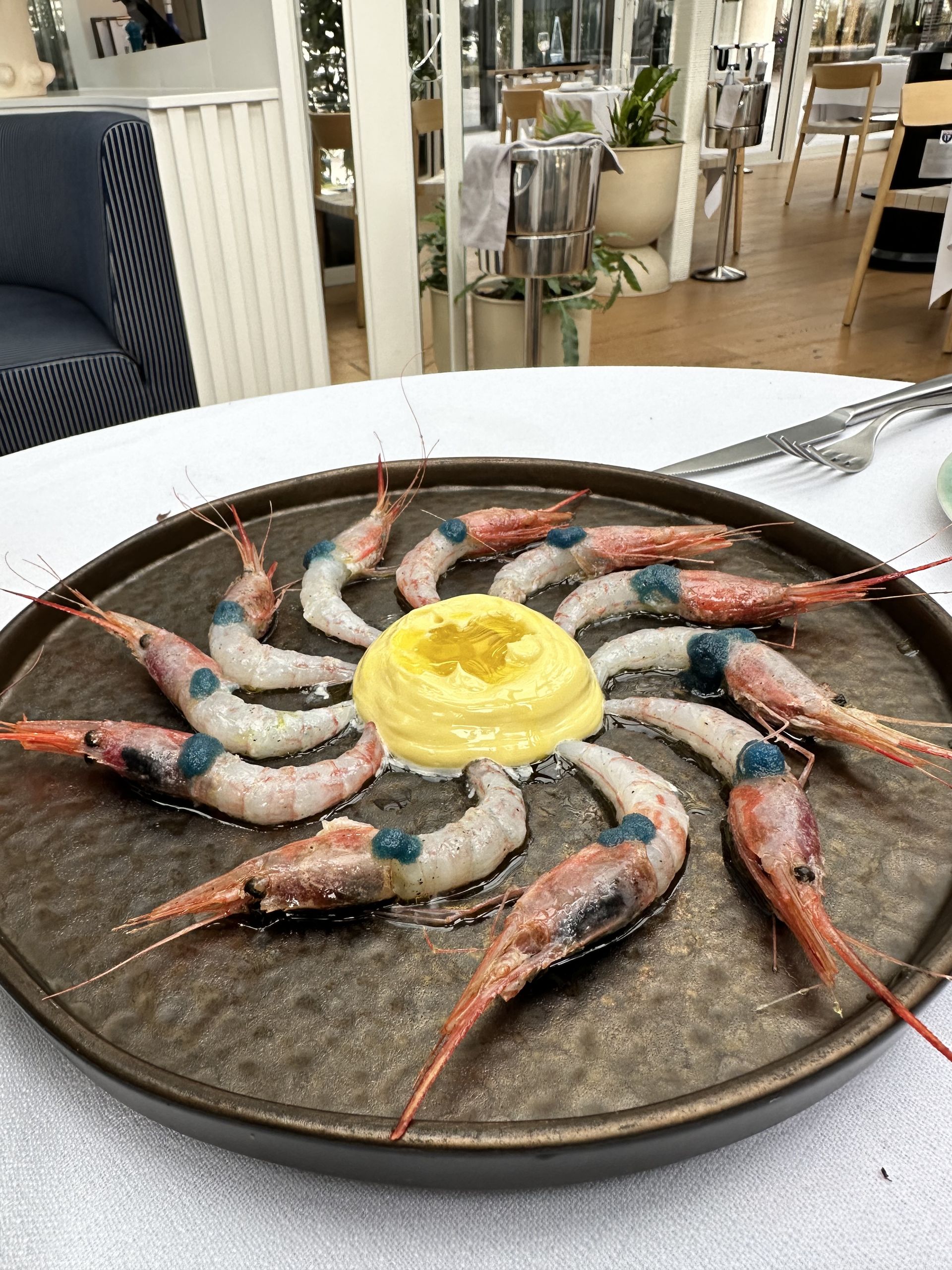 Para ponerle un piso con vistas al mar son las quisquillas de Marbella, al natural aliñadas con limón, pimienta y mayonesa de AOVE.
