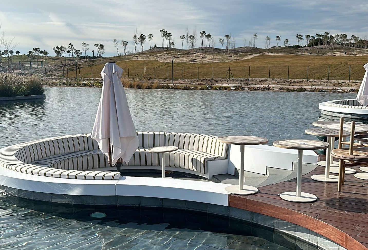 Otra segunda terraza que sin duda va a ser la sensación de esta primavera verano ya que cuenta con dos mesas sumergidas en el lago y que conforman un espacio único en el que también podrás disfrutar de sus cócteles de autor.