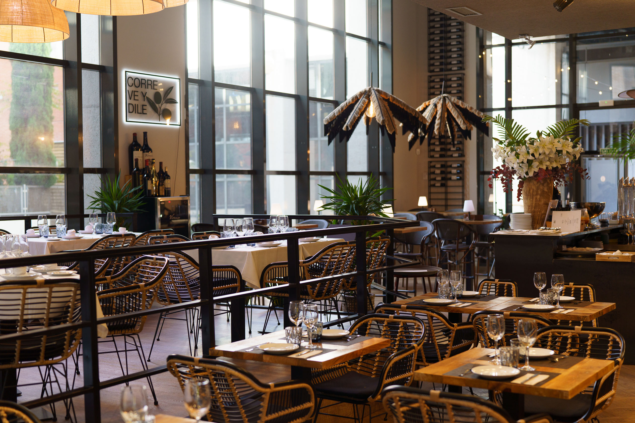 El salón de Corre ve y dile tiene varias estancias con distintos ambientes que se adecúan a las necesidades de todos los comensales.