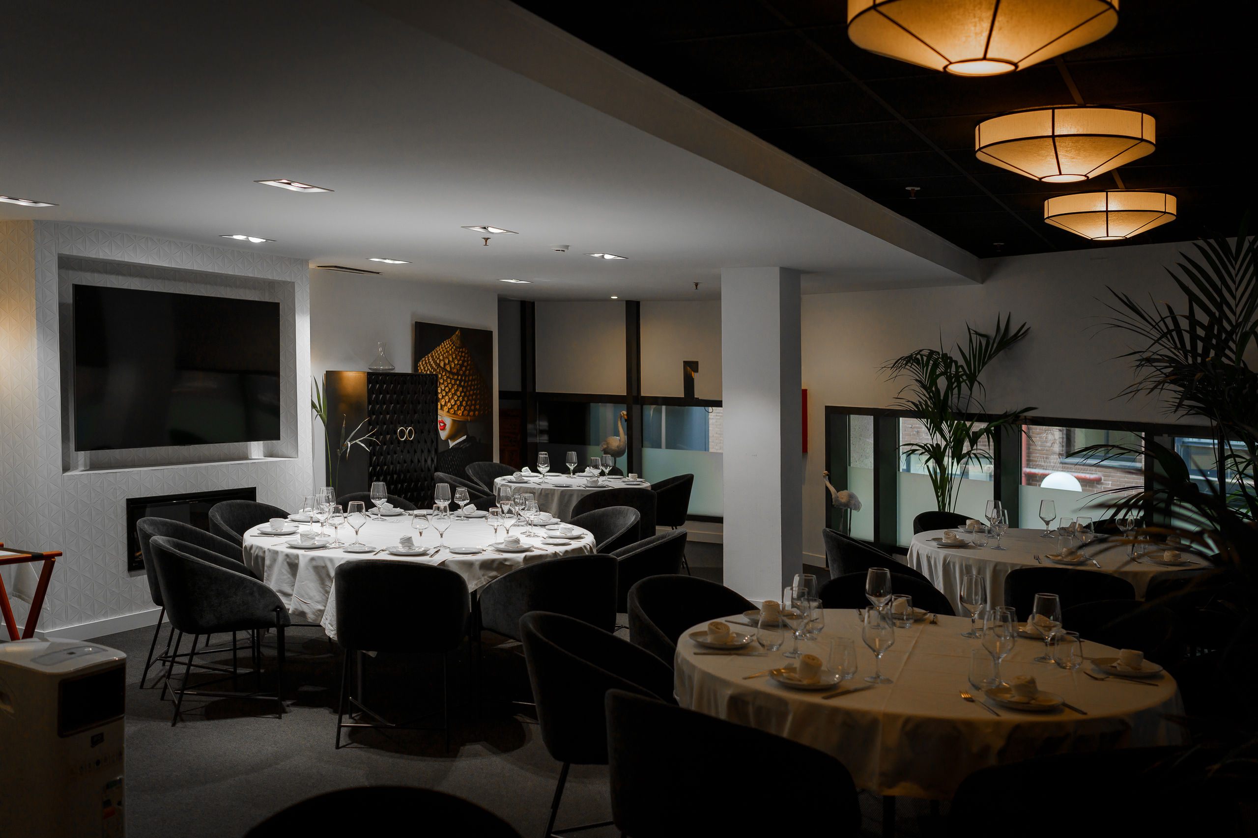 En la parte superior, tras dejar los tres retratos de unos leones elegantemente vestidos, otro comedor con mesas amplias y redondas que es perfecto para celebraciones o para hacer la función de reservado.