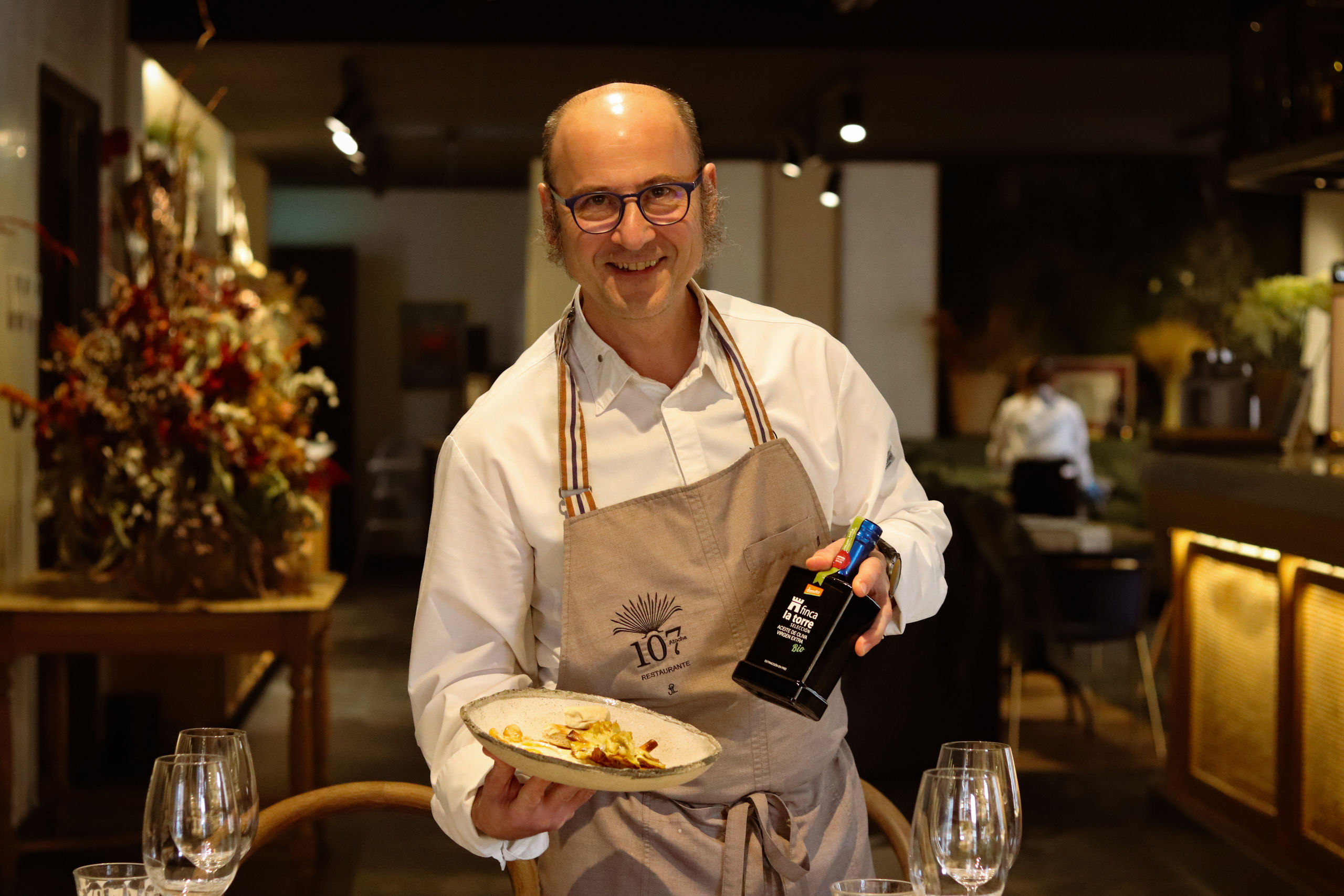 El chef Joaquín Felipe del restaurante Atocha 107 elabora el huevo frito perfecto con el AOVE Hojiblanca de Finca la Torre.