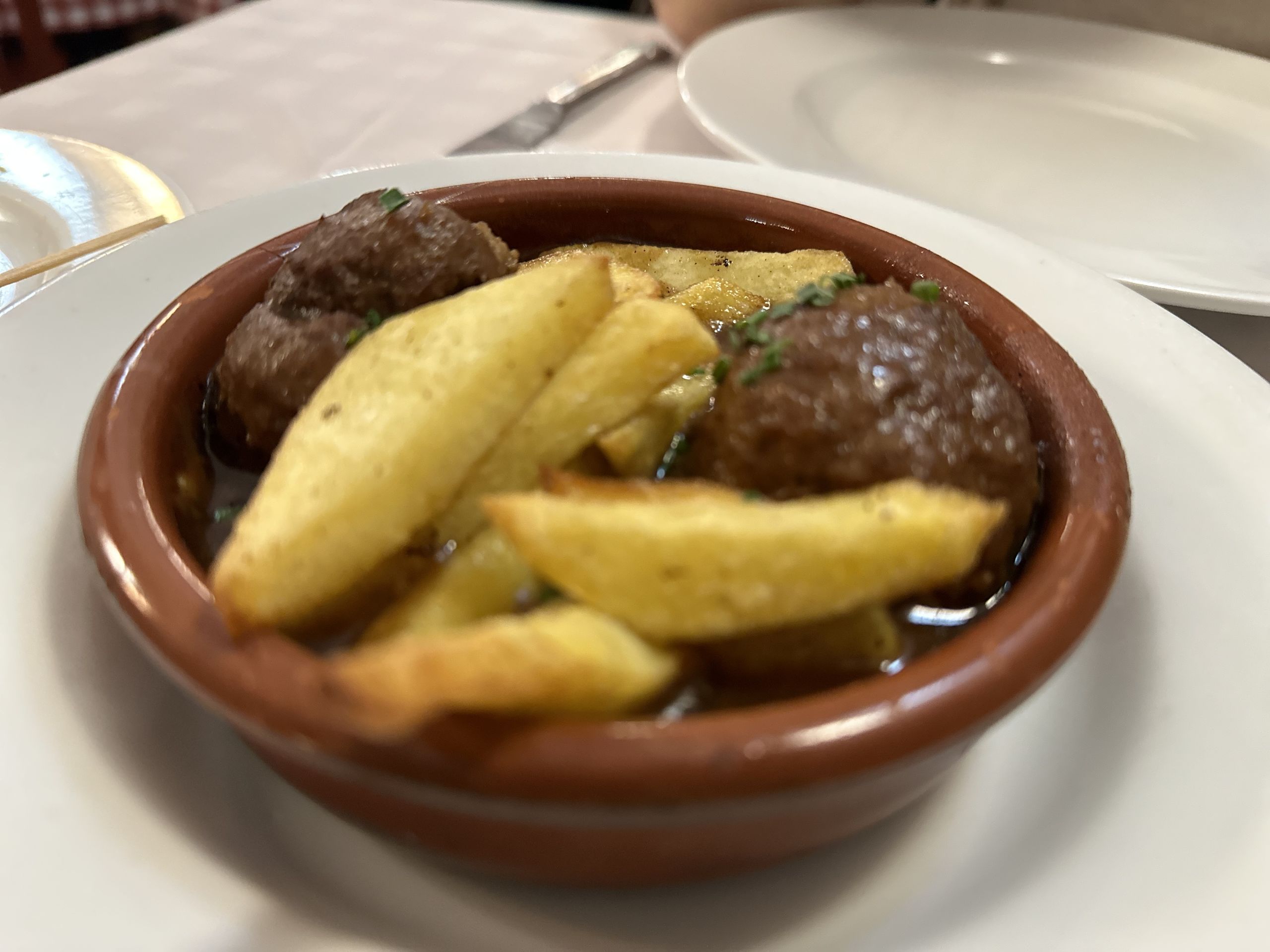 La Tasca Suprema han intentado aliviar los platos de cuchara y dar mayor protagonismo a la huerta navarra de la que llegan tomates, alcachofas y demás verduras, pero siempre manteniendo los platos tradicionales como las albóndigas con patatas, suaves, ricas y con un intenso sabor propio de haber estado tiempo en el fuego.